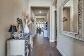 Extremely rare rental opportunity in Bradford Park with a beautiful open floor plan! Gorgeous home features 4 bedrooms plus a study, game room, 3 full baths and a half bath, wood flooring, custom paint & an open concept in Flower Mound. Primary bedroom w-dual vanities, garden tub & separate shower plus a large walk-in closet. Open kitchen features quartz countertops, custom herringbone backsplash, upgraded appliances, double ovens, ample counter space and extensive cabinets for storage. Downstairs you will find a split floor plan with 2 spacious bedrooms separate from primary bedroom for privacy. Enjoy a home office or flex room with french doors. Upstairs, there is a 4th bedroom with a full bathroom and game room next to it. Backyard offers plenty of space for entertaining and great covered patio for relaxation. Close to DFW airport, shopping, restaurants and in exemplary school district. Refrigerator included.