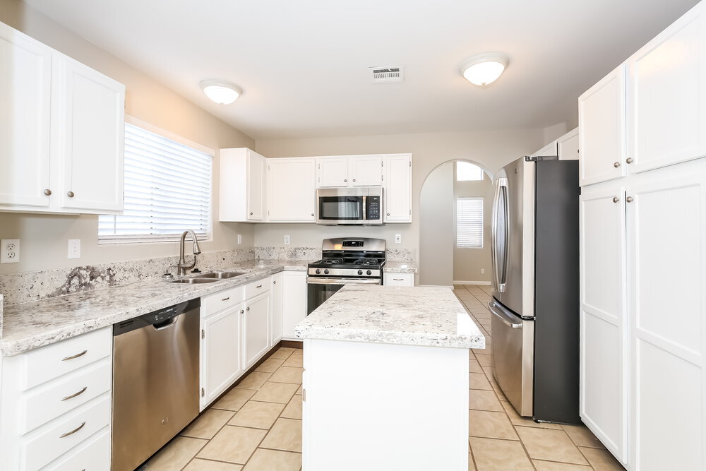¿Quieres hacer un tour por tu cuenta? Haga clic en el botón “Mostrarse” en la lista de esta casa o llame para inscribirse en una presentación autoguiada en el momento que mejor le convenga. Esta casa cuenta con la aplicación para casa inteligente Progress Smart Home - Progress Residential, que te permite controlar la casa de forma segura desde cualquiera de tus dispositivos. Obtenga más información en Esta casa de alquiler de Las Vegas, Nevada, cuenta con un garaje para un automóvil adjunto. La cocina incluye una despensa, gabinetes blancos, encimeras de granito y electrodomésticos de acero inoxidable. También hay una isla de cocina en el centro. Los pisos de baldosas continúan hacia la sala de estar, donde encontrará techos altos, una hermosa chimenea de gas y una escalera abierta al segundo piso. En la planta superior, el dormitorio principal tiene pisos de madera y una ventana panorámica. Un amplio vestidor ofrece una gran cantidad de espacio de almacenamiento. El baño principal contiguo cuenta con dos lavamanos en un encantador área de tocador, además de una combinación de ducha y bañera con mampara de vidrio. En la planta baja, las puertas corredizas de vidrio conducen al patio cubierto en el patio trasero paisajístico. Programe hoy mismo un recorrido por esta casa de alquiler renovada en Las Vegas.