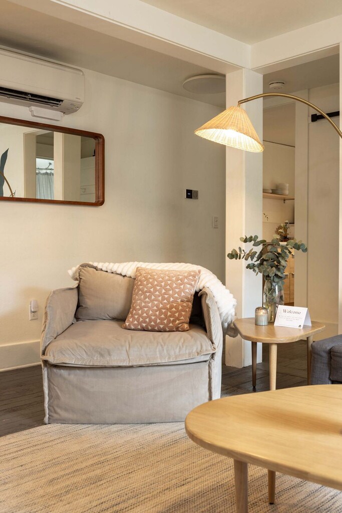 Feel at home in this quaint flat nestled above a boutique hair salon in a beautiful historic home in the heart of downtown Boise. This 2-bedroom, 1-bath apartment is perfectly located just two blocks north of the Capitol Building, between Boise's iconic foothills and its vibrant downtown. This unique space has been tastefully furnished and is complete with a full kitchen, sleeper sofa, and in-unit washer/dryer. The kitchen includes an electric range, electric skillet, electric kettle, and dishwasher, as well as a refrigerator, extra sheets and bedding, and towels. Kid-friendly amenities are available upon request, including a pack 'n' play and high chair. Please reach out before your stay if you would like to request any of these as they are limited in supply. The location is truly what makes this space unique. The Boise Foothills are the perfect getaway from the city and just a short walk through the VA campus will put you at the Military Reserve trailhead. Just south of the trailhead you will find the Boise Bike Park that offers terrain for riders of all levels. The trail system is expansive. After your ride in our lovely foothills, you can park your bike at the house and walk south down 6th street, through the Idaho Capitol campus, through Cecil Andrus Park, in front of Boise's historic post office and you will come to 8th Street, Boise's restaurant row (about a 10-minute walk). This is the City's hub for fine dining and your access point to Boise's iconic Freak Alley, the largest outdoor mural and graffiti gallery in the Northwest. A small boutique hair salon operates on the first floor. During regular business hours, please keep music and television at a reasonable volume as not to disturb the stylists and their clients below. After the salon is closed, you'll have the entire place to yourself. Please kick off your shoes when you get home. Registration Number: 082158L [SI]