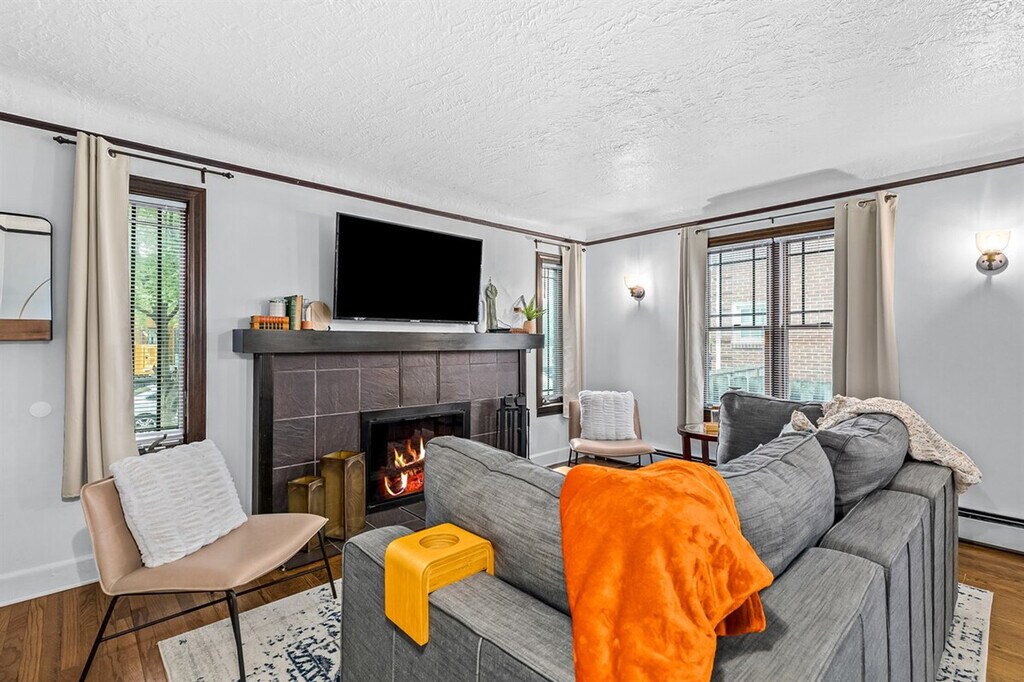 Feel at home in this charming Tudor-style, 1920s-built, 2-bedroom lower flat located just a short walk from downtown Royal Oak. This newly renovated apartment offers easy access to Woodward Avenue and the 696 expressway, making it a convenient 15-minute drive to downtown Detroit. Enjoy the vibrant neighborhood with its array of restaurants, bars, and entertainment options. Step into the inviting flat and find a newly renovated kitchen, fully equipped with all the essentials to prepare your favorite meals. The kitchen maintains the original charm of the 1920s home while offering modern amenities. The dining area opens onto a relaxing living room, perfect for unwinding on the LoveSac couch and enjoying your favorite shows on the TV. The apartment features two cozy bedrooms with queen-size beds, ensuring a restful night's sleep. Step out onto the covered balcony for a breath of fresh air and enjoy your morning coffee or evening snack in this serene space. The basement provides private laundry facilities, shared with the upstairs flat but with separate appliances. Enjoy the convenience of free parking and a private outdoor balcony. The backyard features a fire pit with surrounding seating for relaxing evenings outdoors. Nestled on a quiet and friendly street, this apartment offers a perfect escape from the hustle and bustle while being just a 10-minute walk to Main Street in Downtown Royal Oak. Explore local bars, restaurants, boutique shops, and more. The location provides quick access to local farmers' markets, grocery stores, and parks. With nearby freeways, you can reach Downtown Detroit in just 15 minutes. Nearby attractions include the Detroit Zoo, Beaumont Royal Oak Hospital, and Mark Ridley's Comedy Castle. The apartment is located on the 2nd floor and is not pet-friendly. Non-approved pets will incur a $1000 fine. A Ring doorbell camera is installed at the front door for safety, monitoring only the exterior entryway. Smoking is prohibited inside the home, with a $1000 fee for violations. Quiet hours are from 9 PM to 8 AM, and noise complaints may result in a $250 fine. Check-out time is 11 AM, with a $250 fee for late check-outs. The apartment is part of a duplex, and occasional noise from the upstairs flat may be heard. Excessive cleaning fees may apply for dirt or stains, and furniture should not be moved, with fines for violations. Stay connected with high-speed Wi-Fi and a smart lock for easy access. The apartment includes air conditioning and heating for your comfort. [SI]