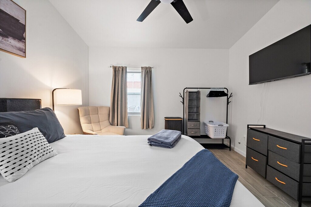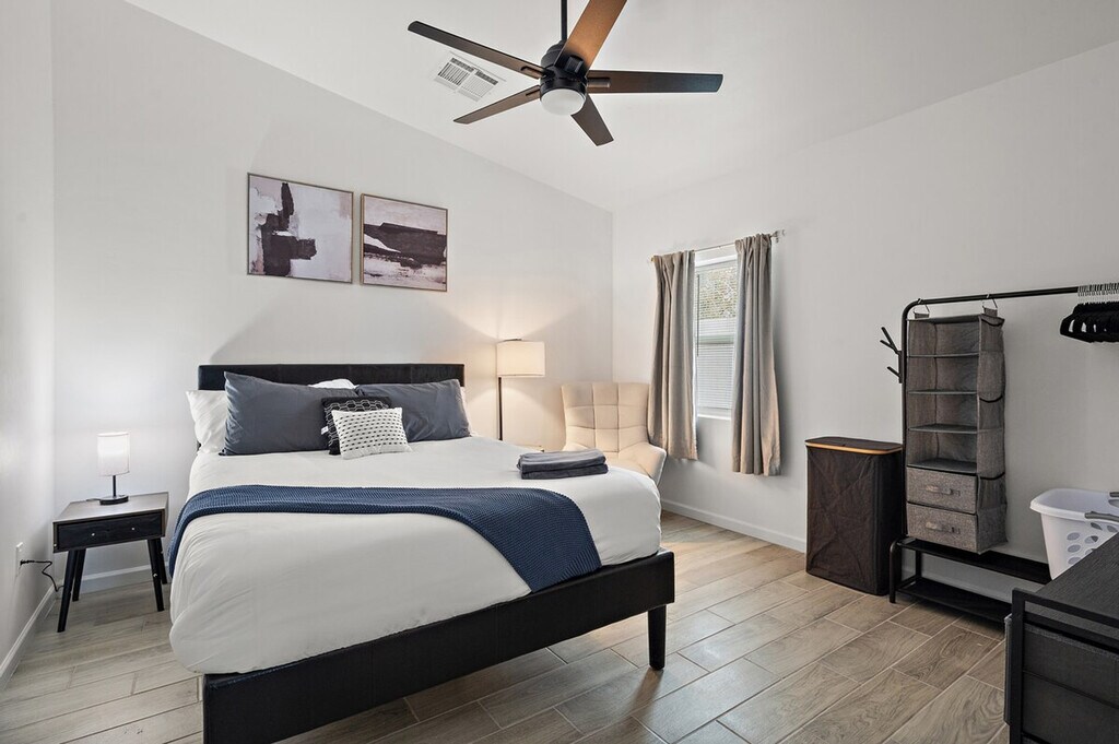 Feel at home in this fully furnished apartment featuring 2 bedrooms and 2 full baths. This apartment is equipped with a full kitchen including a full-size fridge, dishwasher, gas stove, microwave, oven, air fryer, coffee maker, blender, toaster, and water kettle. Additional amenities include a washer and dryer, backyard, dining set for 4, central AC and heating, 3 smart TVs, high-speed Wi-Fi, and blackout curtains. This apartment is pet-friendly and free parking is available. This apartment is conveniently located 3.8 miles from St. Joseph's Hospital, 7.4 miles from Banner - University Medical Center Phoenix, and 9 miles from Valleywise Health Medical Center. It's also near attractions like Downtown Phoenix (6.5 miles), Tempe Marketplace (17.3 miles), Old Town Scottsdale (11.6 miles), Scottsdale Fashion Square (10.9 miles), and Phoenix Sky Harbor International Airport (10.4 miles). Rate from December to March is $3,500 per month with everything included and up to $100 per month in electric. Includes a desk and chair. [SI]