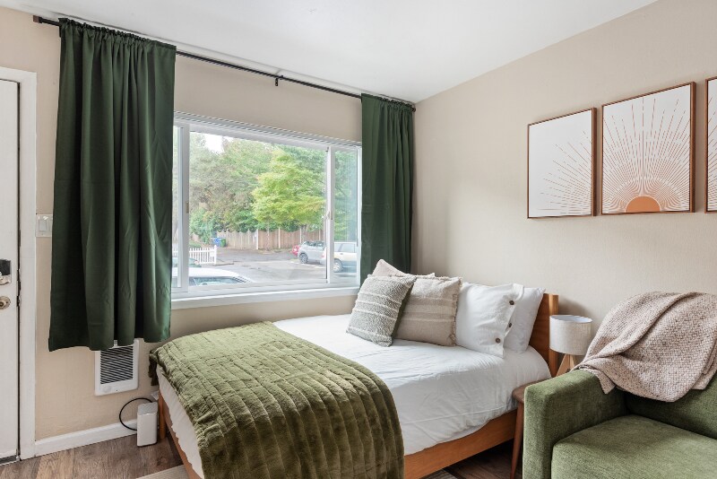 Property Id: 2203356 Settle into this charming, pet-friendly studio in Portlands beautiful Mt. Tabor neighborhood. Ideal for mid-term travelers, healthcare professionals, or remote workers, this thoughtfully equipped space includes a full kitchen, dedicated parking, smart lock entry, and on-site laundry. Located minutes from Laurelhurst Park, minutes to Mt. Tabor Park, and within easy reach of hospitals and public transit. Fast Wi-Fi and blackout curtains ensure both productivity and rest during your stay. This private studio is designed with comfort and convenience in mind. It includes: A full-size bed with soft linens and blackout curtains Fully equipped kitchen with full-size appliances, cookware, and utensils Smart lock for keyless entry On-site laundry (shared) Fast Wi-Fi and a work-friendly setup Dedicated off-street parking spot Ground-level access, no stairs Located in Mt. Tabor, one of Portlands most loved and walkable neighborhoods!