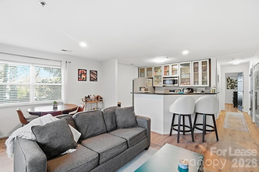 Experience Uptown living in Charlotte s vibrant Fourth Ward! This stylish end-unit condo offers exceptional privacy, convenience, and charm. The open floor plan features a cozy fireplace, built-in bookshelves, and a spacious covered balcony overlooking the pool and beautifully landscaped common areas with city views. The kitchen is appointed with granite countertops, stainless steel appliances, and a breakfast bar perfect for entertaining. Abundant natural light enhances the condo throughout. The private owner s retreat includes a walk-in closet and an ensuite bath. Community amenities include a pool, firepit, picnic areas, and a fitness center. Assigned parking is located just outside the unit for easy access. Enjoy walkable access to dining, shopping, museums, Bank of America Stadium, Truist Field (Knights Stadium), Spectrum Center, and nearby parks. Convenient to the light rail, Amtrak, Greyhound, greenways, and trails. Easy access to I-277 makes commuting a breeze. Furniture is negotiable.