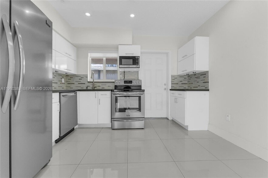 Move-in ready 2/1 duplex featuring porcelain tile flooring and renovated kitchen. This home offers maximum security and energy efficiency with impact windows throughout. Includes private laundry with washer/dryer. Centrally located near major highways and dining. Tenant pays all utilities. Rapid approval for qualified tenants.