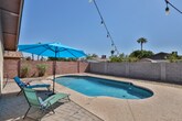 Property Id: 595815 Escape to this chic 3-bedroom, 2-bathroom home with a pool, situated in a serene Arizona neighborhood—perfect for a vacation or staycation. Designed with travelers in mind, our home features a stylish living room adorned with modern furnishings and a 55-inch smart TV. The fully equipped kitchen comes with stainless steel appliances and a cozy dining area. After a busy day exploring the city, unwind by the spacious non-heated diving pool and relish outdoor dining in the tranquil atmosphere. The space Things to Know: • Entire House: Enjoy complete privacy during your stay. • Smart TV: Stream your favorites on Prime and Netflix • Fully Equipped Kitchen: Includes a dishwasher, stove, fridge with ice maker, and more. • Central Air Conditioning: Stay cool and comfortable. • Pool: Enjoy the spacious diving pool, complete with toys and floaties. • Board Games: A selection for family fun and Backyard Games: • Outdoor Grills: Both gas and charcoal options available.