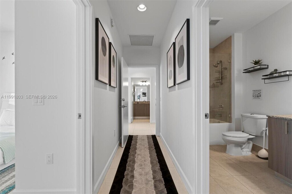 English: Modern 2-bedroom, 2-bathroom penthouse at 5350 Park. This unique unit functions as an efficiency thanks to its dual-entry lock-out design, allowing one suite to be used independently. Features include floor-to-ceiling impact windows, a private balcony with city views, and high-end finishes. Includes assigned parking in a secure covered garage plus 24/7 valet service. Located in the heart of Downtown Doral, steps from top-rated schools and dining. MLS # A11991803