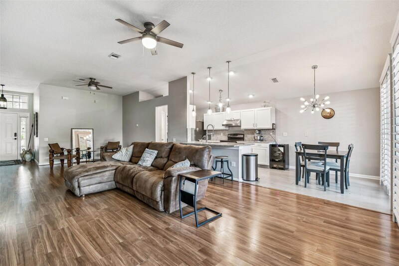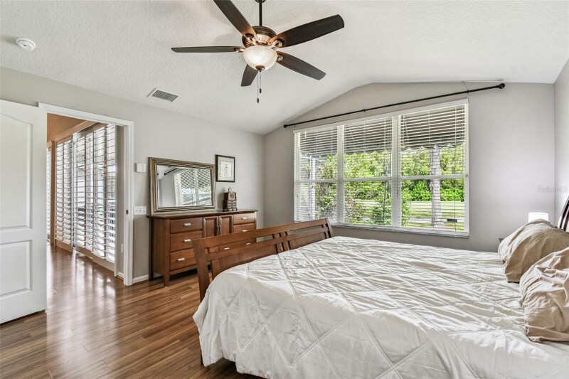 Property Id: 2269203 Beautifully renovated, gated, GOLF course views, maintenance-free 3 bedroom 2 bath home with high end designer finishes located at Lexington Oaks Wesley Chapel. This home has a plethora of upgrades including a newer roof (2022), NEW refrigerator(2025), NEW range hood(2025), and custom built plantation shutters throughout. The stunning master bath features a freestanding tub, marble mosaic, stand up waterfall shower, frameless glass enclosure with recessed shelf and floor to ceiling porcelain tile. The primary bedroom also has large windows and a built in walk in closet. The chef's kitchen has been upgraded with granite countertops and backsplash, commercial grade delta faucet, kitchen-aid dishwasher, stainless steel single basin sink, designer pendant lighting, new porcelain tile flooring and a plethora of storage. The family room is bright and airy with high ceilings, and sliding glass doors lining the east side of the home providing sunrise views from the rear lanai. In the evening, the sliding custom built plantation shutters provide energy efficiency and privacy. This home is located steps away from the 9th green of the Lexington Oaks Golf course. Stop home during a round of 18 holes or bring your putter to the 9th green after a long day. Remington Village is a maintenance free gated community with a private pool, lawn care, watering, exterior maintenance all included! Ideal for those who wants the advantages of single family living without the hassle. You also have access to Lexington Oaks amenities including Olympic style lap pool located at the community center, 24-hour gym, basketball, tennis, volleyball courts, soccer field, 18-hole golf course, playground, kids splash pad and clubhouse. One of the best locations in Wesley Chapel, Lexington oaks has miles of walking paths and is conveniently located minutes to I-75, Tampa Premium Outlets, Costco, Publix, Wiregrass Mall, The Grove, restaurants, shopping and much more!