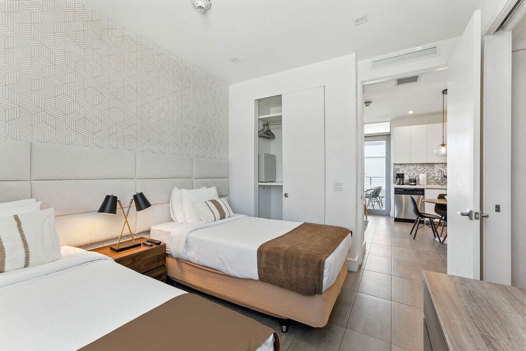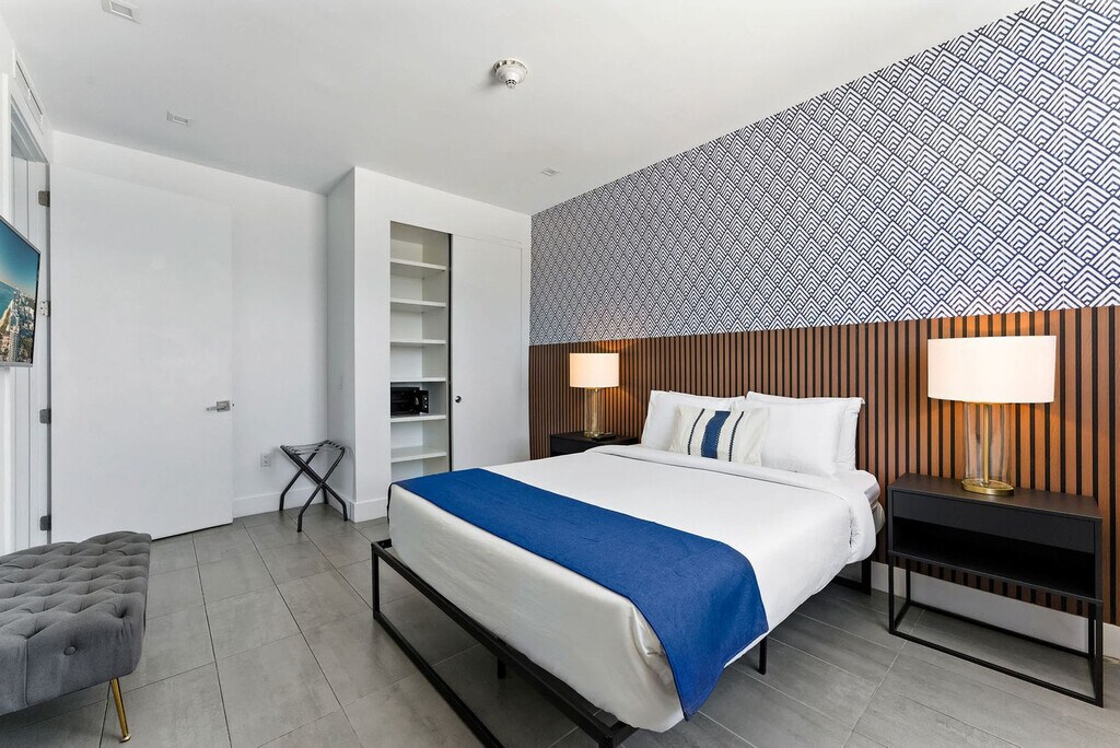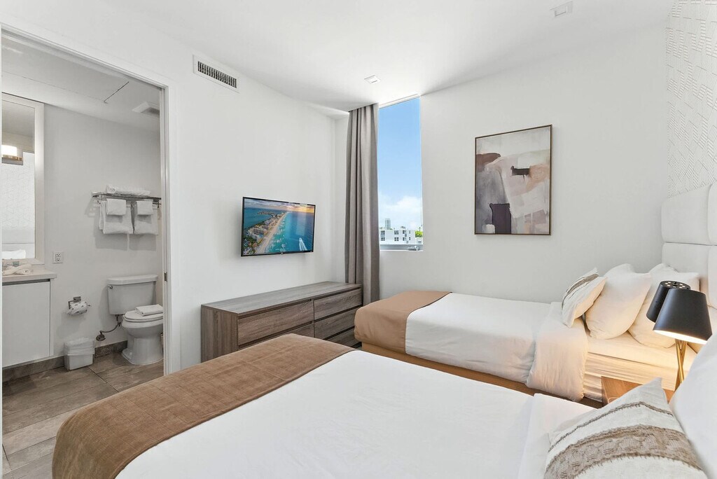 Enjoy comfort and style in this 2-bedroom South Beach apartment, just a 5-minute walk from the beach. This modern and spacious retreat features a fully equipped kitchen and inviting living spaces. Perfectly located in Miami Beach’s SoBe area, it’s within walking distance to top attractions, dining, and nightlife, making it ideal for experiencing all the energy and charm the city has to offer. Welcome to this inviting 2-bedroom apartment in the heart of South Beach, perfect for up to 5 guests. Ideally located between Meridian and 5th Ave, it offers comfort, style, and easy access to all Miami Beach has to offer. The cozy living room with a sofa bed flows into a fully equipped kitchen and dining area. The master suite has a queen bed, while the second bedroom offers two twin beds and its own bathroom. A balcony lets you enjoy the ocean breeze and SoBe vibe. Stay connected with free Wi-Fi and enjoy a welcome kit with beach towels and basic bathroom and kitchen amenities, with replenishment being the guest’s responsibility. Limited garage parking is available for an extra fee and must be reserved in advance. Experience the lively charm of this South Beach location, perfectly set between Meridian and 5th Ave. Just a short walk to the beach, you can soak up the sun, sand, and surf anytime. Savor the area’s diverse dining options, from casual cafés to upscale restaurants, and browse stylish boutiques and shops nearby. With its central spot, you’ll be close to major attractions, nightlife, and the unmistakable energy that makes South Beach a true Miami icon. Registration Number: BTR005435-11-2018 [SI]