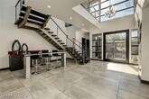 FURNISHED stunning semi-custom William Lyon home on a private cul-de-sac lot in Sterling Ridge at The Ridges. This gorgeous home features 5 ensuite bedrooms, with the primary and one guest suite located downstairs. Each bedroom boasts high-end custom closets with built-ins. Floor-to-ceiling glass pocket doors lead to a spacious covered patio and pool/spa, creating a seamless indoor/outdoor flow, perfect for entertaining. The modern design includes an incredible open space and a gourmet kitchen with a large island/breakfast bar, top-of-the-line Wolf and Subzero appliances, a cozy nook, and a formal dining room. The downstairs master suite features a cozy fireplace, a luxurious master bath with a jetted tub, and a private patio. Upstairs balconies provide partial Strip views, while the backyard offers a refreshing swimming pool, spa, water feature, low-maintenance landscaping, and a covered patio.