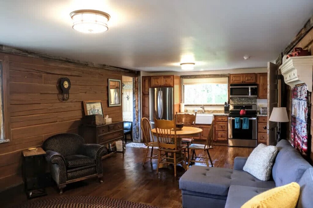 Nestled in the foothills of the Big Hole Mountains, this charming mountain cabin offers a perfect blend of rustic tradition and modern luxury. With incredible views stretching across Teton Valley and the entire Teton Mountain Range, this cabin is a haven of tranquility. Surrounded by aspen trees, it provides an elevated vantage point to soak in the valley and dramatic mountain vistas. This cabin retains its cozy log cabin ambiance while featuring modern upgrades. Recently renovated, it boasts high-end finishes such as barn-wood accents, granite countertops, and historical art celebrating the pioneering spirit of the West. The fully equipped kitchen, with stainless steel appliances and granite countertops, is perfect for culinary adventures. The dining area seats four, offering a scenic spot to share meals. The living room, with a plush couch and a chaise lounge that converts into a sleeper trundle, is ideal for relaxing and enjoying views or winding down with a movie on the large flat-screen smart TV. The bedroom features a comfortable queen bed and an en-suite bathroom with a tub and shower combination. Convenient amenities like a stacked washer and dryer make stays both comfortable and practical. Stay connected with Wi-Fi and enjoy access to streaming services, or unplug with a selection of board and card games. Teton Valley comes alive in the summer with a plethora of outdoor activities. Float down the Teton River or try fly fishing in its crystal-clear waters or the world-class currents of the Snake River. Grand Targhee Resort offers summer activities, from scenic chairlift rides to adventurous mountain biking trails. Explore the thriving downtowns of Driggs and Victor, Idaho, with local cuisine, shopping, and a vibrant outdoor music series. The area boasts world-class mountain biking trails and hiking options, from Grand Teton National Park to the trails up Mahogany Canyon. Distances to National Parks include Yellowstone - West Entrance (1 hr 42 min, 92.3 miles), Yellowstone - South Entrance (2 hr 7 min, 91.8 miles), and Grand Teton (1 hr, 39.4 miles). Distances to Ski Resorts include Grand Targhee Ski Summer Resort (33 min, 20.0 miles) and Jackson Hole Mountain Resort (54 min, 35.7 miles). Distances to Regional Airports include Idaho Falls, ID (1 hr 20 min, 75.5 miles), Jackson, WY (1 hr 7 min, 43.8 miles), and Bozeman, MT (3 hr 33 min, 189 miles). Distances to area towns: Driggs, ID (12 min, 7.9 miles), Victor, ID (17 min, 10.0 miles), Jackson, WY (55 min, 34.5 miles), and Teton Village, WY (54 min, 35.7 miles). The propane stove in the cabin is a refinished antique and has been disconnected. Guests have privacy to enjoy the home, with a team available 24/7 for urgent needs. Important house rules include respecting the maximum sleeping capacity, quiet hours from 9 pm to 8 am, and no events or parties allowed. No smoking or vaping is permitted in the home or on the decks, with additional charges for violations. Exterior lights should be turned off at night to preserve the dark skies. A maximum of two licensed vehicles is allowed in the driveway and garages. No riding snow machines, dirt bikes, or ATVs in the subdivision or at the rental property. No candles or incense should be burned in the home, and no fireworks are allowed on the premises. Main entry doors should be locked when not occupied. Fines apply for violations, including smoking in the house or garage, failure to follow house rules, and mistreatment of the hot tub, with a minimum $500 fine for smoking/vaping/marijuana in the house, violation of house rules, posted signs, laws, or failure to vacate at check-out time. [SI]