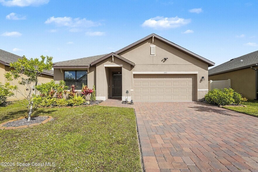 This 3 Bedroom 2 Bath home offers 1672 sq. ft. living space. The floor plan has a covered Lanai added for Extra shade on those long hot summer days. Located in a GATED Community within Bayside Lakes This home features granite countertops, Bright and White cabinets with crown molding, upgraded SS appliances including refrigerator and Window Blinds and ceramic tile added in all living areas except bedrooms. The Family room is very open to the Kitchen. 2 car garage, covered lanai, on a corner lot.The community will have its own pool, Cabana, and tot lot, and also gives access to the Bayside Lakes clubhouse and amenities.