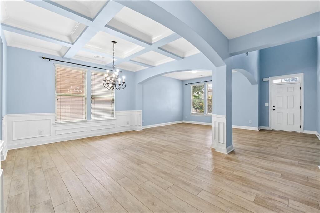 Move-in ready home! This spacious 5-bedroom, 3-bath home features recent upgrades including new LVP flooring, fresh interior paint, new roof(Dec'2023) and stylish modern finishes. It has a grand two-story foyer filled with natural light. The formal dining room showcases coffered ceilings, wainscoting, and elegant architectural details. The open-concept living areas flow seamlessly, making this home ideal for entertaining or daily living. The main level includes a full guest bedroom and bath. The cozy living room features a gas fireplace, while the gourmet kitchen boasts rich cabinetry, granite countertops, stainless steel appliances, tile backsplash, a center island, and double wall ovens. Upstairs, the oversized primary suite includes ceiling fan, and a custom walk-in closet. The en-suite bath offers dual vanities, a soaking tub, a glass-enclosed tile shower, and ceramic flooring. Three additional bedrooms, a full hall bath, and a laundry room complete the upper level. Exterior highlights include fresh landscaping, a two-car garage with carriage-style doors, and a large driveway. The exterior features a large backyard. As part of a sought-after community, enjoy access to a sparkling swimming pool, perfect for relaxing or spending time with family and friends perfect for warm Georgia summers. This home is just minutes from GA-400, Fowler Park, Big Creek Greenway, and Lake Lanier. Shopping, dining, and entertainment are easily accessible at The Collection at Forsyth, Halcyon, Cumming City Center, and Vickery Village. Everyday conveniences like Costco, Publix, Kroger, and Lidl are nearby. A neighborhood walkway provides access to Big Creek Greenway and Fowler Park.