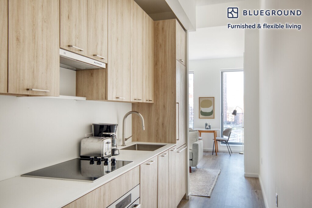 Ofrecemos precios personalizados por cualquier duración. Las tarifas pueden variar según las fechas exactas de mudanza. La tarifa para esta casa comienza en $3,990* / mes. Visita nuestro sitio web e ingresa tus fechas de estadía para ver los precios actualizados para tu reserva específica. *El precio cotizado es: (1) según la mudanza en el primer día en que el apartamento está disponible, (2) aplica solo si se factura por adelantado, puede ser más alto si se factura en múltiples pagos, (3) exclusivo de cualquier impuesto o servicio público. ¡Se admiten agentes inmobiliarios! Pagamos un 5% de comisión sobre el alquiler. Asista y comience a vivir desde el primer día en Brooklyn con este sofisticado apartamento tipo estudio Blueground. Le encantará regresar a su casa en Clinton Hill, cuidadosamente amueblada, bellamente diseñada y completamente equipada, con una vista impresionante de la ciudad. (ID #NYC1022) Diseñado pensando en usted Al igual que con cualquier apartamento Blueground, encontrará un espacio cuidadosamente diseñado con hermosos muebles y una cocina totalmente equipada en esta propiedad tipo estudio. Y, gracias a nuestros colchones, sábanas y toallas de primera calidad, puede relajarse sabiendo que siempre se sentirá cómodo en casa. Cuando esté listo para divertirse, puede disfrutar del ambiente de Brooklyn o traerle el entretenimiento con el altavoz inalámbrico premium o el televisor inteligente. Este apartamento también ofrece lavandería en el apartamento. Alojamiento para dormir Cama Queen, servicios de 160 cm Los servicios del edificio exclusivos de este estudio incluyen: - Portero - Secador - Ascensor - Gimnasio - Piscina - Lavadora - Salón - Se permiten mascotas Llegada y asistencia continua ¡Todo el apartamento es suyo! Un miembro del equipo de Blueground te dará la bienvenida personalmente o te dará instrucciones de auto check-in. Durante su estancia, tendrá acceso a nuestro equipo de experiencia del cliente a través de la aplicación Blueground. Puedes programar limpiezas adicionales, enviar solicitudes de mantenimiento y ver las recomendaciones de nuestro vecindario con solo unos pocos toques. Compartiremos todos los detalles tras la confirmación de su estancia. Con una ubicación ideal Este apartamento amueblado está ubicado en Clinton Hill, un histórico barrio del centro de Brooklyn. La zona alberga tiendas de moda, restaurantes ingeniosos y muchos edificios hermosos de piedra marrón. El Pratt Institute, una prestigiosa universidad de arte, se encuentra en Clinton Hill. Otras atracciones cercanas incluyen el encantador Fort Greene Park y el Barclays Center, un enorme estadio deportivo y lugar de conciertos. Clinton Hill cuenta con las líneas A, C y G del sistema de metro de la ciudad de Nueva York. Otras cosas a tener en cuenta Las amenidades del edificio pueden tener un costo adicional. Este apartamento Blueground tiene opciones de arrendamiento flexibles, lo que te permite reservarlo por un mes, un año o más. Las mascotas son bienvenidas, aunque se aplican límites de peso y restricciones de raza y pueden incurrir en cargos. Intermediarios CYOF. Nos enorgullecemos de asegurarnos de que cada foto que se muestre se tome en nuestros propios apartamentos con nuestro mobiliario real. Dicho esto, actualizamos regularmente nuestra decoración y disposición de muebles, que pueden diferir de lo que se muestra en la imagen.