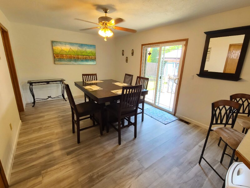 Property Id: 2401017 Happy Furnished Home With Relaxing Hot Tub About this space Relax with the whole family/friends. It is ideal and well equipped for short and long term stays (flexible). This beautifully updated 3 bedroom, 2.5 bath home was recently remodeled from top to bottom. We'll look forward to making this your most positively memorable stay in Oregon! The space The open floor plan welcomes you with comfortable seating and a flat screen Smart TV set up for movie night or binge watching your favorite shows or channels. The kitchen is fully equipped and stocked with all cooking requirements ideal for long stays. Cookware, flatware, dishware and silverware are all provided as well as Microwave, toaster, oven, stove, fridge, freezer and french press coffee maker. Bedroom 1 and 2 both have full size beds and ceiling fans and windows for fresh air and sunlight plus closet space. They also include full size dresser drawers with mirrors. Bedroom 3 has a QUEEN size bed and full dresser, ceiling fan and large window for fresh air and sunlight. The washer and dryer are in the laundry room with cabinet space for storage. Central heating and air conditioner. This home features LVP flooring throughout the main floor and and newer carpet in the bedrooms. You can also use the attached 2 car garage with room for storage. The back yard is fully fenced with plenty of yard for your pet. One of the highlights of this home is a 4 person Viking Hot Tub. Neighborhood overview This home is in a nicer neighborhood where pride of ownership is evident. We work with housing companies for insurance placement, contractors, traveling nurses, and other placement agencies which need nice furnished homes for your clients. Furnished home to move-in and live includes living room furniture, Smart TV, kitchen pots, pans, dishes, utensils, dining room table and chairs, beds, lamps and dressers. Utilities Included for and ideal for insurance placements, corporate housing, contractor assignments, etc...