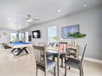 Welcome to your dream vacation destination in Palm Coast! This luxurious 4-bedroom, 4.5-bath beach home accommodates up to 10 guests and offers ocean views, a heated in-ground pool, and a short walk to the beach. The stunning white kitchen features seating for 5, and the dining area comfortably seats 8. Relax in the expansive living area with a large-screen Internet TV, or enjoy the game room with a pool table and theater-style seating. This exquisite vacation rental promises an unforgettable getaway. Step inside to find a dazzling main floor adorned with pristine white accents and contemporary beach decor. The heart of the home is a stunning white kitchen, complete with a vast island offering seating for 5, perfect for casual gatherings or culinary adventures. Adjacent, a spacious dining area awaits, featuring an elegant table accommodating eight guests comfortably. Relaxation beckons in the expansive living area, where a sumptuous sectional sofa and large-screen Internet TV invite you to unwind in style. Triple sliders blend indoor and outdoor living seamlessly, leading to the enchanting pool area, where endless leisure hours await. Indulge in the ultimate relaxation with the option to heat the pool for an additional fee, ensuring year-round enjoyment. This luxurious amenity is available for a nominal weekly cost of $287. While we truly love animals and wish we could accommodate them, this property does not allow pets. We have returning guests with health sensitivities, and we kindly ask for your understanding and consideration in helping us maintain an allergen-free environment for them. If you are traveling with a service animal, please contact us at least 30 days in advance so we can make every effort to accommodate your needs appropriately. Marinaland Acres is a charming neighborhood nestled in the scenic coastal city of Palm Coast, Florida. Known for its picturesque surroundings and waterfront living, Marinaland Acres offers a serene and tranquil atmosphere perfect for those seeking a laid-back lifestyle. The neighborhood is characterized by its lush greenery, towering palm trees, and well-maintained properties. Many homes in Marineland Acres boast stunning views of the ocean and are located close to parks and the navigable Intracoastal Waterway, providing residents with convenient access to boating and water recreation. Conveniently located near shopping, dining, and entertainment options, Marinaland Acres provides residents with easy access to everything Palm Coast has to offer while still maintaining a peaceful residential ambiance. Situated near the famous Flagler Beach, residents can easily access miles of pristine coastline, perfect for sunbathing, surfing, and beachcombing. Additionally, Marinaland Acres is conveniently located near the historic city of St. Augustine, known for its charming cobblestone streets, centuries-old architecture, and rich cultural heritage. For those seeking excitement and entertainment, Marinaland Acres is just a short drive away from Daytona Beach, famous for its lively boardwalk, NASCAR events, and bustling nightlife. The property manager is local and is always available by phone, text, or in person. Quiet hours are between 22:00 and 7:00. The minimum age to book is 25 years old. Kindly note that the yard is not fenced and lacks privacy landscaping, which may not be ideal for pets or service animals. A car is recommended for getting around, although Uber is available. [SI]