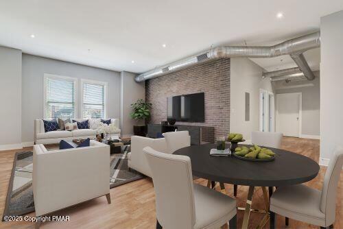 Discover modern living in the heart of East Stroudsburg with this stylish 2-bedroom, 1-bathroom apartment. Boasting upgraded finishes throughout, this apartment combines contemporary design with practical convenience. Enjoy the vibrant lifestyle of downtown, where you can easily walk to an array of shops, dining options, and other attractions. Close to ESU and hospital. The apartment offers access to major highways, making it ideal for commuters. Residents will appreciate the elevator access and the security of on-site parking. Please note that pets and smoking are not permitted in the building, ensuring a clean and tranquil living environment. Applicants must meet specific financial criteria, including a minimum credit score of 700 and a strong income. Photos are virtually staged.