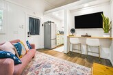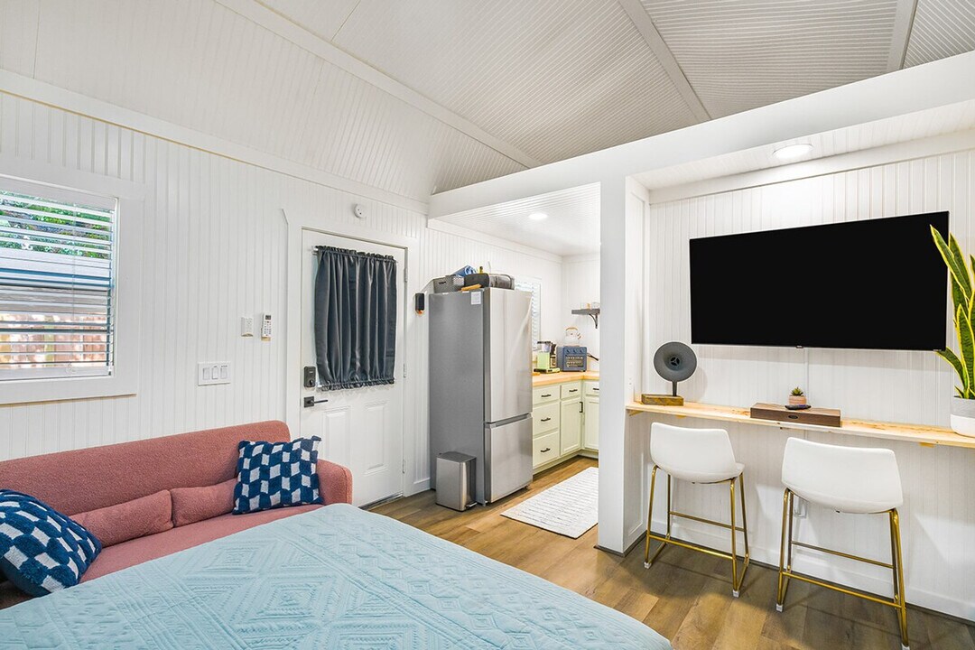 The advertised rate of $1,673/month is the lowest available price, based on a 1 month(s) stay with a move-in date of April 19, 2026. Rates vary depending on the duration of stay, season, and other parameters. For exact pricing and additional pricing components, please visit our website and enter your desired move-in and move-out dates. The rate is applicable when billed upfront; it can be higher if billed in multiple payments. Enjoy everything the romantic Hill Country has to offer in this luxury tiny home, tucked away in peaceful dark sky territory with serene views, wildlife, luxury amenities, and a private yard. Feel at home in this amenity-packed tiny home. Equipped with a Blackstone griddle, fire pit, and state-of-the-art kitchen equipment, this home offers all the comforts of home nestled into amazing natural scenery. The kitchen boasts filtered water on a rainwater system, and includes a mini oven, induction stovetop, top-of-the-line mocha-master coffee maker with fresh ground coffee from local shops, and all the needed kitchen accouterments for a delicious night in. Relax with a custom-built queen-size Murphy bed that folds up so you can enjoy even more space. A 50" smart TV and Wi-Fi access allows you to stream movies and shows. Outside, there is enough fenced-in room for pets to run around, nearly 3 and a half sprawling acres for you to roam, a separate fenced-in dog area, and a community garden. Pets are welcome. The property also includes two other unique spaces (a Cottage and Luxury RV), perfect for larger groups or additional privacy. These spaces can be rented separately or together, offering flexibility for your stay. Located in a peaceful Hill Country area in dark sky territory, this home is conveniently close to Wimberley, Dripping Springs, and all the surrounding Hill Country destinations. Rolling Oaks is a sleepy neighborhood where the starlight is truly amazing. Parking is ample on the property, making it easy to get around. Respect the property and the space. No glitter is allowed. Please drive carefully as there are many deer in this area. We ask our guests to respect the tranquility of the area. [SI]