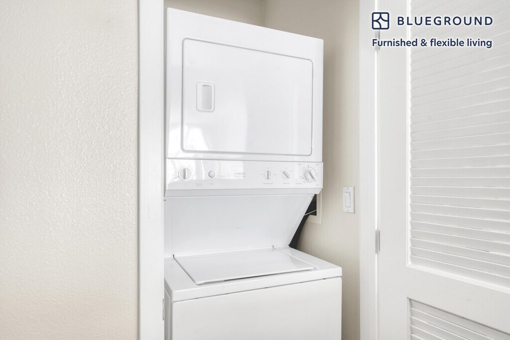 Show up and start living from day one in Santa Clara with this bright one bedroom Blueground apartment. You’ll love coming home to this thoughtfully furnished, beautifully designed, and fully equipped Rivermark of Santa Clara home. (ID #SFO954) The advertised rate of $3,950/month is the lowest available price, based on a 12 month(s) stay with a move-in date of March 3, 2026. Rates vary depending on the duration of stay, season, and other parameters. For exact pricing and additional pricing components, please visit our website and enter your desired move-in and move-out dates. The rate is applicable when billed upfront; it can be higher if billed in multiple payments. Brokers are welcome to reach out. Were you looking for an unfurnished lease? Try Blueground instead and upgrade from unfurnished to furnished living: - Furnished at rates comparable to unfurnished - No setup or furniture costs - save thousands - Move-in ready - save time, just bring your suitcase Designed with you in mind Thoughtfully designed with bespoke finishes, modern furnishings, and a fully equipped kitchen, you’ll enjoy that “I’m home” feeling with this Blueground apartment. Whether you’re lounging in your pretty living room streaming the latest and greatest entertainment on the smart TV or premium wireless speaker, or getting some well-earned rest on the superior quality mattress with fully stocked linens, you’ll fall in love with everything this Rivermark of Santa Clara apartment has to offer. This apartment also offers in-apartment laundry. Sleeping arrangements King Bed, 70.8in/180cm Amenities Building amenities unique to this one bedroom apartment include an on-site: - BBQ Area - Dryer - Elevator - Swimming pool - Washing machine - Media room - Parking - Pets allowed Arrival and ongoing support The entire apartment is yours to enjoy! Throughout your stay, you’ll have access to our Client Experience team through the Blueground App. You can schedule additional cleanings, submit maintenance requests, and view our neighborhood recommendations with just a few taps. We’ll share all details upon confirmation of your stay. Other things to note Building amenities may have an extra cost. This Blueground apartment has flexible lease options, allowing you to book it for one month, a year, or more. Pets are welcome, though weight limits and breed restrictions apply and may incur fees. Parking is offered based on availability and is subject to a fee. We take great pride in ensuring every photo displayed is shot in our own units with our actual furnishings. That said, we regularly refresh our decor and furniture arrangement, which may differ from what’s pictured. [SI]