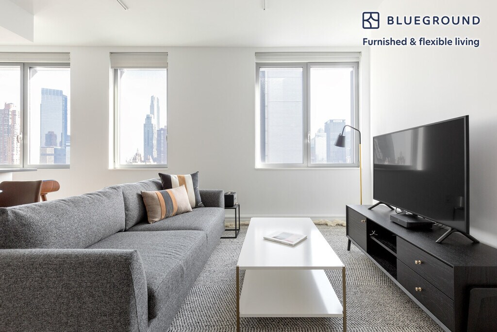 Ofrecemos precios personalizados por cualquier duración. Las tarifas pueden variar según las fechas exactas de mudanza. La tarifa para esta casa comienza en $6,080* / mes. Visita nuestro sitio web e ingresa tus fechas de estadía para ver los precios actualizados para tu reserva específica. *El precio cotizado es: (1) según la mudanza en el primer día en que el apartamento está disponible, (2) aplica solo si se factura por adelantado, puede ser más alto si se factura en múltiples pagos, (3) exclusivo de cualquier impuesto o servicio público. ¡Se admiten agentes inmobiliarios! Pagamos un 5% de comisión sobre el alquiler. Siéntete como en casa dondequiera que elijas vivir con Blueground. Le encantará este acogedor apartamento de dos dormitorios amueblado en Midtown West con decoración moderna, cocina totalmente equipada y sala de estar bien iluminada con una magnífica vista desde una de las plantas más altas del hotel. Con una ubicación ideal, está cerca de todo lo mejor que Midtown tiene para ofrecer. (ID #NYC360) Diseñado pensando en usted Al igual que con cualquier apartamento Blueground, encontrará un espacio cuidadosamente diseñado con hermosos muebles y una cocina totalmente equipada en este hotel de dos dormitorios. Y, gracias a nuestros colchones, sábanas y toallas de primera calidad, puede relajarse sabiendo que siempre se sentirá cómodo en casa. Cuando esté listo para divertirse, puede disfrutar del ambiente de Midtown o traerle el entretenimiento con el altavoz inalámbrico premium o el televisor inteligente. Este apartamento también ofrece lavandería en el apartamento. Dormir camas Queen, camas dobles de 160 cm /63 pulgadas, servicios de 140 cm Los servicios del edificio exclusivos de este dormitorio incluyen: - Portero - Secador - Ascensor - Gimnasio - Lavadora - Mascotas permitidas Llegada y asistencia continua ¡Todo el apartamento es suyo! Un miembro del equipo de Blueground te dará la bienvenida personalmente o te dará instrucciones de auto check-in. Durante su estancia, tendrá acceso a nuestro equipo de experiencia del cliente a través de la aplicación Blueground. Puedes programar limpiezas adicionales, enviar solicitudes de mantenimiento y ver las recomendaciones de nuestro vecindario con solo unos pocos toques. Compartiremos todos los detalles tras la confirmación de su estancia. Con una ubicación ideal Este apartamento amueblado está ubicado en Midtown West, también conocido como Hell’s Kitchen. Es uno de los barrios más emblemáticos de la ciudad. Hogar de las brillantes luces de Times Square y Broadway, la zona está constantemente llena de actividad. A lo largo de Restaurant Row, los comensales pueden encontrar una amplia variedad de sabores para complacer a las multitudes extremadamente diversas. Hay innumerables opciones para satisfacer cualquier antojo en cualquier momento del día. Midtown West ofrece paseos tranquilos por el río Hudson, perfectos para pasar tiempo al aire libre en un día soleado. El muelle consta principalmente de barcos turísticos, que ofrecen una forma única de experimentar la ciudad. Cerca se encuentran los rincones relajantes de Bryant Park y la Biblioteca Pública de Nueva York. El área de Midtown West es fácilmente accesible en transporte público. La histórica Grand Central Station está a solo 20 minutos a pie. Otras cosas a tener en cuenta Los servicios del edificio pueden tener un costo adicional. Este apartamento Blueground tiene opciones de arrendamiento flexibles, lo que te permite reservarlo por un mes, un año o más. Las mascotas son bienvenidas, aunque se aplican límites de peso y restricciones de raza y pueden incurrir en cargos. Intermediarios CYOF. Nos enorgullecemos de asegurarnos de que cada foto que se muestre se tome en nuestros propios apartamentos con nuestro mobiliario real. Dicho esto, actualizamos regularmente nuestra decoración y disposición de muebles, que pueden diferir de lo que se muestra en la imagen.