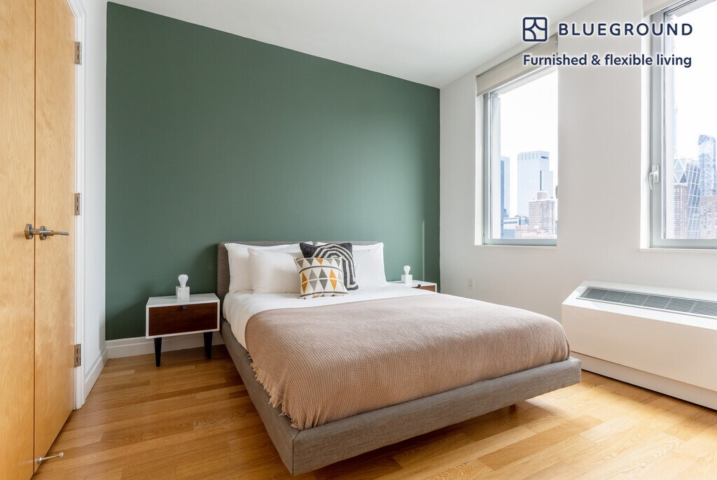 Ofrecemos precios personalizados por cualquier duración. Las tarifas pueden variar según las fechas exactas de mudanza. La tarifa para esta casa comienza en $7,260* / mes. Visita nuestro sitio web e ingresa tus fechas de estadía para ver los precios actualizados para tu reserva específica. *El precio cotizado es: (1) según la mudanza en el primer día en que el apartamento está disponible, (2) aplica solo si se factura por adelantado, puede ser más alto si se factura en múltiples pagos, (3) exclusivo de cualquier impuesto o servicio público. ¡Se admiten agentes inmobiliarios! Pagamos un 5% de comisión sobre el alquiler. Ven y comienza a vivir desde el primer día en Midtown con este bonito apartamento Blueground de dos dormitorios. Le encantará regresar a su hogar en esta casa de Midtown West, cuidadosamente decorada, con un hermoso diseño y completamente equipada, que ofrece una magnífica vista a la ciudad desde una de las plantas más altas del hotel. (ID #NYC469) Diseñado pensando en usted Al igual que con cualquier apartamento Blueground, encontrará un espacio cuidadosamente diseñado con hermosos muebles y una cocina totalmente equipada en este hotel de dos dormitorios. Y, gracias a nuestros colchones, sábanas y toallas de primera calidad, puede relajarse sabiendo que siempre se sentirá cómodo en casa. Cuando esté listo para divertirse, puede disfrutar del ambiente de Midtown o traerle el entretenimiento con el altavoz inalámbrico premium o el televisor inteligente. Este apartamento también ofrece lavandería en el apartamento. Alojamiento para dormir con cama Queen, 160 cm /63 in, comodidades de 160 cm Las comodidades exclusivas de este hotel de dos dormitorios incluyen: - Portero - Secador - Ascensor - Gimnasio - Lavadora - Mascotas permitidas Llegada y asistencia continua ¡Todo el apartamento es suyo! Un miembro del equipo de Blueground te dará la bienvenida personalmente o te dará instrucciones de auto check-in. Durante su estancia, tendrá acceso a nuestro equipo de experiencia del cliente a través de la aplicación Blueground. Puedes programar limpiezas adicionales, enviar solicitudes de mantenimiento y ver las recomendaciones de nuestro vecindario con solo unos pocos toques. Compartiremos todos los detalles tras la confirmación de su estancia. Con una ubicación ideal Este apartamento amueblado está ubicado en Midtown West, también conocido como Hell’s Kitchen. Es uno de los barrios más emblemáticos de la ciudad. Hogar de las brillantes luces de Times Square y Broadway, la zona está constantemente llena de actividad. A lo largo de Restaurant Row, los comensales pueden encontrar una amplia variedad de sabores para complacer a las multitudes extremadamente diversas. Hay innumerables opciones para satisfacer cualquier antojo en cualquier momento del día. Midtown West ofrece paseos tranquilos por el río Hudson, perfectos para pasar tiempo al aire libre en un día soleado. El muelle consta principalmente de barcos turísticos, que ofrecen una forma única de experimentar la ciudad. Cerca se encuentran los rincones relajantes de Bryant Park y la Biblioteca Pública de Nueva York. El área de Midtown West es fácilmente accesible en transporte público. La histórica Grand Central Station está a solo 20 minutos a pie. Otras cosas a tener en cuenta Los servicios del edificio pueden tener un costo adicional. Este apartamento Blueground tiene opciones de arrendamiento flexibles, lo que te permite reservarlo por un mes, un año o más. Las mascotas son bienvenidas, aunque se aplican límites de peso y restricciones de raza y pueden incurrir en cargos. Intermediarios CYOF. Nos enorgullecemos de asegurarnos de que cada foto que se muestre se tome en nuestros propios apartamentos con nuestro mobiliario real. Dicho esto, actualizamos regularmente nuestra decoración y disposición de muebles, que pueden diferir de lo que se muestra en la imagen.