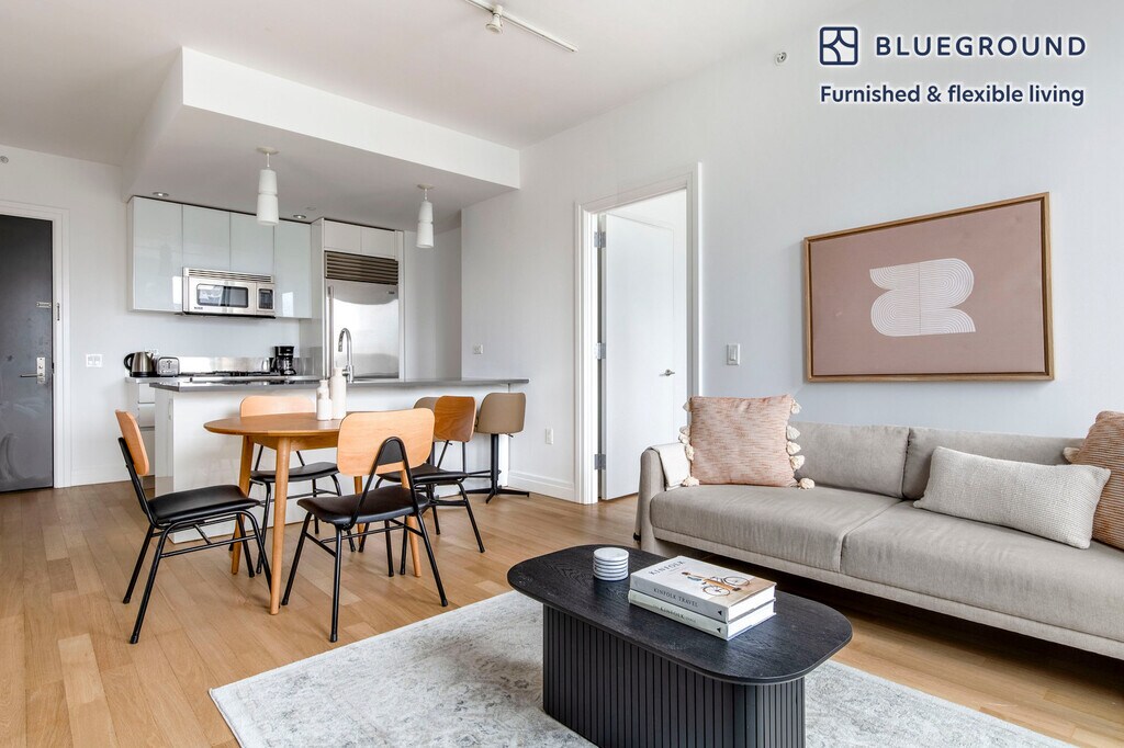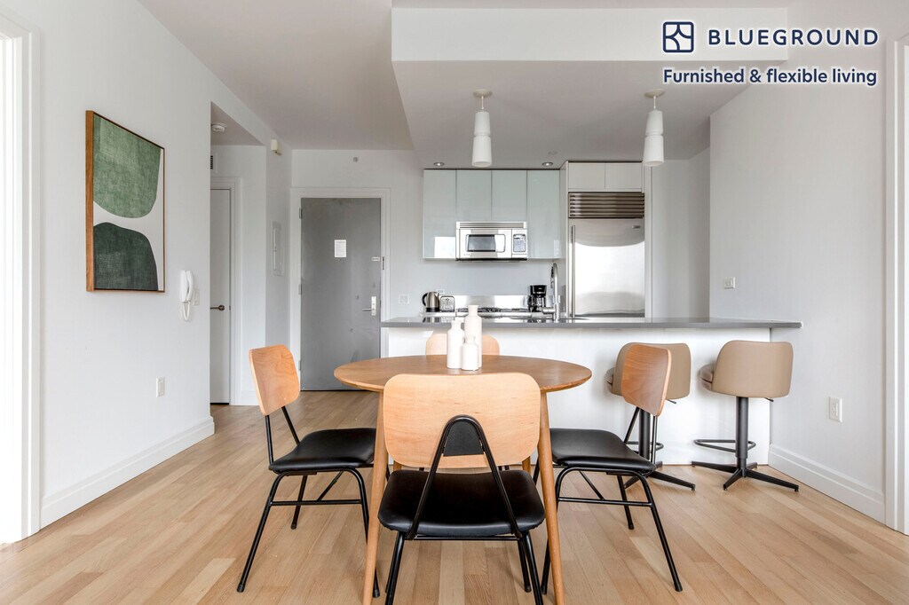 Feel at home wherever you choose to live with Blueground. You’ll love this stylish Hell's Kitchen furnished two bedroom apartment with its modern decor, fully equipped kitchen, and pretty living room with great high floor views. Ideally located, you’re close to all the best that New York has to offer! (ID #NYC1459) The advertised rate of $9,310/month is the lowest available price, based on a 11 month(s) and 29 day(s) stay with a move-in date of February 10, 2026. Rates vary depending on the duration of stay, season, and other parameters. For exact pricing and additional pricing components, please visit our website and enter your desired move-in and move-out dates. The rate is applicable when billed upfront; it can be higher if billed in multiple payments. Brokers are welcome to reach out. Were you looking for an unfurnished lease? Try Blueground instead and upgrade from unfurnished to furnished living: - Furnished at rates comparable to unfurnished - No setup or furniture costs - save thousands - Move-in ready - save time, just bring your suitcase Designed with you in mind As with any Blueground apartment, you’ll find a thoughtfully designed space complete with beautiful furniture and a fully equipped kitchen in this two bedroom property. And, thanks to our superior quality mattresses, luxury linens, and towels, you can relax knowing you’ll always feel comfortably at home. When you’re ready for some fun, you can take in the New York vibes or bring the entertainment to you with the premium wireless speaker or smart TV. This apartment also offers in-apartment laundry. Sleeping arrangements Queen Bed, 63in/160cm Queen Bed, 63in/160cm Amenities Building amenities unique to this two bedroom apartment include an on-site: - Doorman - Dryer - Elevator - Washing machine - Pets allowed Arrival and ongoing support The entire apartment is yours to enjoy! Throughout your stay, you’ll have access to our Client Experience team through the Blueground App. You can schedule additional cleanings, submit maintenance requests, and view our neighborhood recommendations with just a few taps. We’ll share all details upon confirmation of your stay. Other things to note This Blueground apartment has flexible lease options, allowing you to book it for one month, a year, or more. Pets are welcome, though weight limits and breed restrictions apply and may incur fees. Brokes CYOF. We take great pride in ensuring every photo displayed is shot in our own units with our actual furnishings. That said, we regularly refresh our decor and furniture arrangement, which may differ from what’s pictured. [SI]