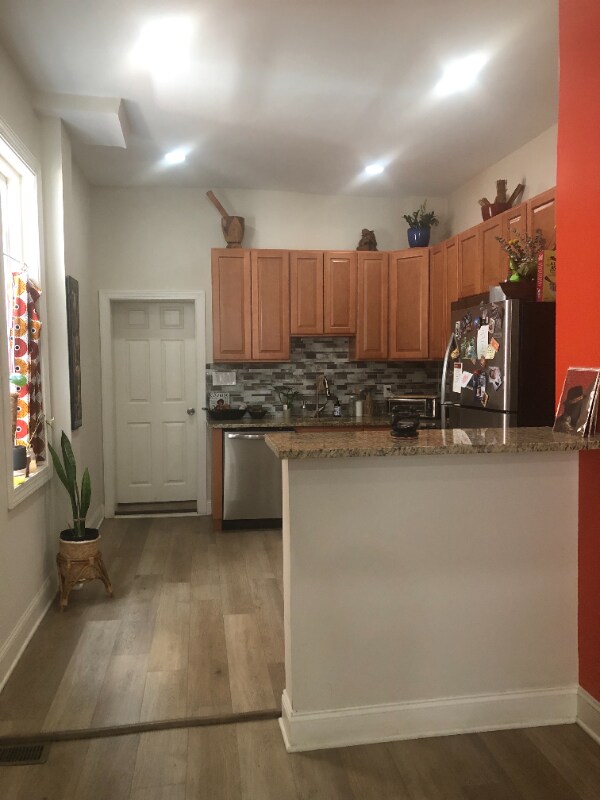 Property Id: 1723433 This house is a classic Philadelphia rowhome that was fully renovated four years ago. It is a peaceful space that has been well taken care of. All appliances and furnishings are like new. Property includes an enclosed and furnished back patio, as well as a front porch with chairs to lounge. Additionally there is a washer/dryer room. It has a semi-finished basement that is perfect as a workout room, an art space, or lounging areas. You'll be just 8 minutes from the largest park in Philadelphia (Fairmount Park). Also, the house is conveniently located in walking distance to two different trolley lines that will take you around the city.