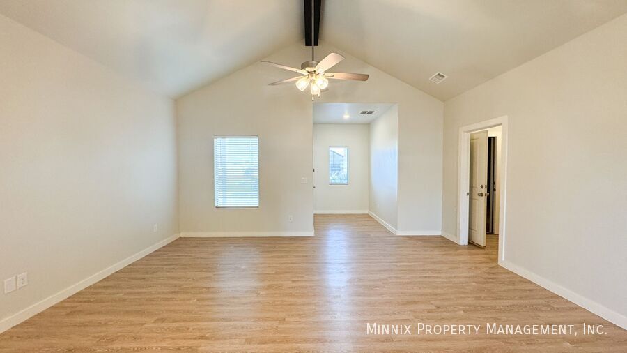$250 gift card with a 12 month lease! A stunning 3-bedroom, 2-bathroom home. This property boasts a range of modern amenities including a dishwasher, microwave, and stove/oven in the kitchen, complemented by beautiful granite counters. The living area features a cozy fireplace and vaulted ceilings, creating a spacious and inviting atmosphere. Each bedroom is equipped with walk-in closets and ceiling fans for your comfort. The home also offers a convenient laundry hookup within the unit and central air conditioning and heating for year-round comfort. The exterior of the home is just as impressive with a xeriscape yard, a covered back porch for outdoor relaxation, and an attached 2-car garage. The home is located within the Lubbock Cooper ISD, making it a great location. The property also offers a zero deposit move-in option. The tenant will be responsible for gas, electric, water/sewer, and trash removal. This home is available for a one-year lease. Offered by Minnix Property Management. This home is available for a 12-month lease. This property is available for self-guided tours! 7 am to 9 pm, 7 days a week! Pets are welcome with a $400 refundable per pet deposit. We comply with Fair Housing Guidelines when it comes to Service Animals and Emotional Support Animals. Vacant properties are held no more than 21-days. A deposit is required to hold the property. Renter’s insurance is required for all properties. $24.99/Month Minnix Resident Benefit Package: $0 Security deposit when using our deposit alternative that reduces your move costs. You may still use a traditional cash security deposit. Free Security Deposit Review - Don't agree with the charges at move out? Get a free independent review of your charges. Rent Plus - Credit reporting for on-time rent payments to build your credit! Automatically enrolled, opt out available. Flexible Payments - Administered by Flex Pay when you want so you can do more of what you want. Flex is built into your online portal that pays your rent on the first and allows you to pay back on your terms. Free Online eCheck - Pay your rent only with no additional fees if using the eCheck option. TXU Energy - $50 Visa gift card when you choose TXU as your energy provider using the promo code "RENT" through this link: Rent Check - Conveniently and easily document the condition of your residence when requested. DAVE - Get an advance up to $500. Get more money to help cover rent, fill your tank, tackle your to-do list, or take advantage of a now-or-never opportunity. Missed Appointment Fee Reimbursement - Missed that maintenance appointment? No worries, you may be eligible for reimbursement. Lockout Reimbursement - Reimbursement coverage just in case you do lock yourself out. Free Drain Maintenance Packs - Get a free supply kit to help with clogged or slow drain issues. Move-in Promise - Peace of mind that all maintenance requests made in the first 30 days are completed in 2 weeks! Overnight Stay Reimbursement - Maintenance issue force you to stay in hotel? Reimbursement available! Moving Concierge - Get personalized help for your move in or move out and more! Accidental Damage Coverage - Get $1000 back on accidental damages to the property! Early Termination Options In this ever-changing world, we know that things change. Minnix Property Management works with you when the need for an early termination arises. Please contact the main office at for details and guidelines. Photos and Video may not be an exact representation of this property. Information herein deemed reliable but not guaranteed. 2 Car Garage Ceiling Fan Covered Back Porch Dining Area Double Sink Bath Vanity Front Porch Lubbock Cooper Isd No Utilities Included Tenant Pays Water/Sewer/Trash Vaulted Ceilings Vinyl Plank Walk In Closets Xeriscape Yard Zero Deposit Move In Option