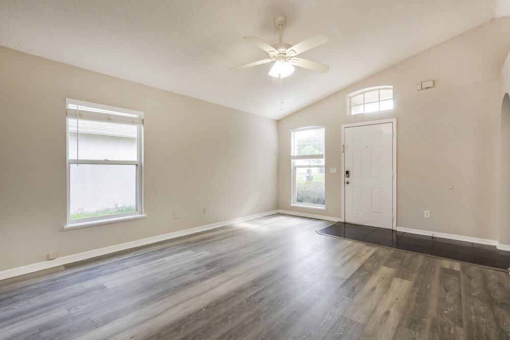 Tenga en cuenta que nuestras casas están disponibles por orden de llegada y no se reservan hasta que el arrendamiento sea firmado por todos los solicitantes y se cobren los depósitos de garantía. ¿Quieres hacer un tour por tu cuenta? Haga clic en el botón “Mostrarse” en la lista de esta casa o llame para registrarse para una presentación autoguiada en el momento que mejor le convenga. Esta casa de alquiler en Orlando, Florida, tiene tres dormitorios, dos baños y muchísimas características muy codiciadas, como un garaje contiguo y un diseño abierto. La sala de estar lo impresionará de inmediato al entrar. Tiene un moderno piso de plancha de vinilo y un techo abovedado extra alto para mantener el espacio en expansión. Siga la encantadora puerta arqueada hacia la cocina para encontrar una iluminación colgante y una isla central que también sirve como barra de desayuno. Le encantarán los pisos de azulejos negros que se extienden desde la cocina hasta el comedor adyacente. Abra las puertas corredizas de vidrio en la suite del dormitorio principal para relajarse en el patio trasero de hormigón de la casa. Además de un gran armario, la suite también cuenta con un baño privado. ¡Solicite hoy mismo un recorrido por esta casa en persona!