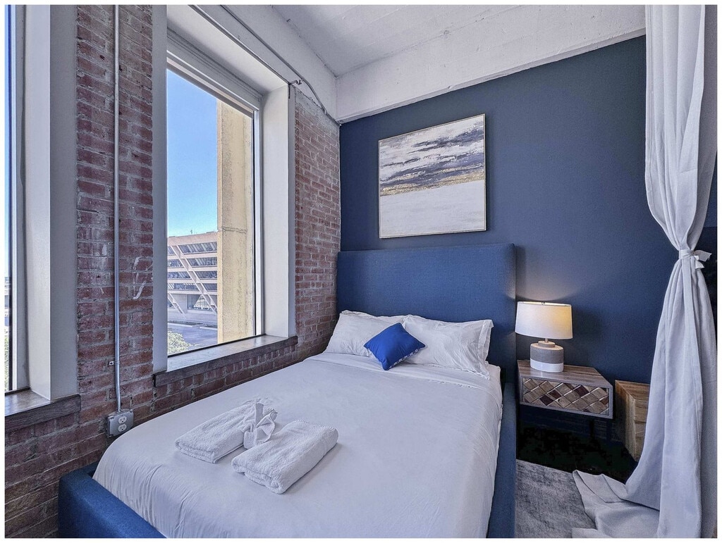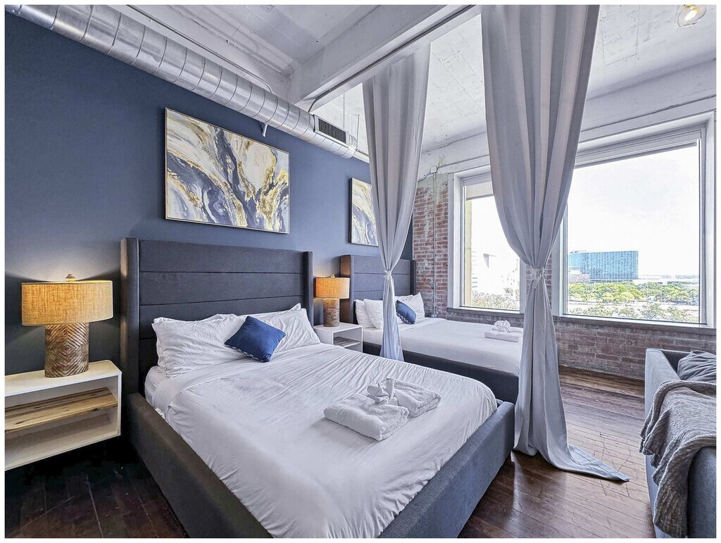 Just a 5-minute walk from the Kay Bailey Convention Center, this apartment is ideally situated as your home base in Dallas. Nestled in the lively downtown area, you'll be close to top restaurants, major business centers, museums, and scenic parks. Whether you're visiting for business or pleasure, enjoy a distinctive and memorable stay that goes beyond the ordinary hotel experience. Welcome to this charming 3-bedroom, 2-bath apartment offering breathtaking views of Downtown Dallas, where modern luxury meets ultimate comfort. The open living and dining areas are adorned with LED lighting and stylish furnishings, creating a welcoming space to relax or entertain. Each bedroom serves as a tranquil retreat, featuring large windows with abundant natural light, warm wooden floors, and stunning nighttime city views. With 9 beds in total, this apartment comfortably accommodates up to 18 guests. The layout is designed for comfort and flexibility, with the third bedroom located in the living area and separated by large curtains for privacy. The fully equipped kitchen has everything you need to prepare meals with ease, including a microwave, oven, stove, refrigerator/freezer, and dishwasher. Oversized vehicles are not permitted in the parking garage. Vehicles that exceed the garage’s height or size limitations will be denied entry at check-in in accordance with the building’s parking regulations. Pets may be allowed based on their size, but prior approval is required to avoid cancellation. A pet cleaning fee will be charged as follows: $25 per pet, per night for stays of 1–4 nights, $200 per pet for stays of 5–29 nights, and $300 per pet for stays of 30 nights or more. This apartment is just a 5-minute walk from the Kay Bailey Convention Center and is nestled in the lively downtown area. You'll be close to top restaurants, major business centers, museums, and scenic parks, making it an ideal location for both business and leisure travelers. Security cameras are installed in shared/common areas for your safety, and a Minut noise monitoring device is located in the unit to ensure a peaceful and compliant environment. [SI]