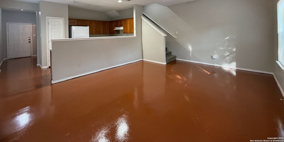 Off FM 78 and Woodlake you will find tucked away 3-bedroom, 2.5-bath duplex on a cul de sac, offering over 1,300 sq. ft. of comfortable living space. The open main level features stained concrete floors, a spacious living area, and a charming galley kitchen with ample cabinet space. All bedrooms upstairs include ceiling fans and generous closet space. The primary has it's own full bath, and the two secondary bedrooms share a full bath with Tub/Shower combo. Enjoy a private backyard with a 6' fence-perfect for pets, play, or relaxing outdoors. Just minutes from Woodlake Golf Course, Randolph AFB, and Fort Sam Houston, with easy access to I-10 and Loop 1604. A great opportunity to lease a well-maintained home in a convenient location-schedule your showing today!