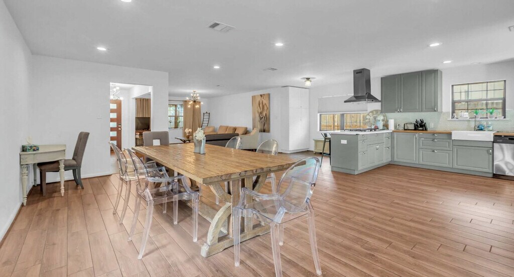 The advertised rate of $5,537/month is the lowest available price, based on a 1 month(s) stay with a move-in date of September 26, 2026. Rates vary depending on the duration of stay, season, and other parameters. For exact pricing and additional pricing components, please visit our website and enter your desired move-in and move-out dates. The rate is applicable when billed upfront; it can be higher if billed in multiple payments. Experience an ideal balance of exploration and relaxation at this Houston vacation rental! Located in the peaceful Maplewood area, this 3-bedroom, 2-bath home boasts a charming interior where you can unwind, watch TV, and enjoy home-cooked meals in between activities. Feel at home in this family-friendly Texas home that offers a private and elegant escape to gather with loved ones between any and all Houston adventures! The home features an open layout, natural light, modern decor and furnishings, a fireplace, a formal dining table, a desk, and a flat-screen TV. The fully equipped kitchen has upscale finishes, a 4-person bistro table, a stainless steel kitchen hood, an ice maker, a coffee grinder, a coffee maker, a toaster, a blender, spices, cooking basics, dishware, and flatware. There is also a laundry room with a washer and dryer. Parking is available in the garage for 2 vehicles, in the driveway for 3 vehicles, and on the street. Dogs are welcome with a non-refundable pet fee of $150 per dog per stay. A fee of $39 per guest per night applies from the seventh guest onwards. The fourth bedroom opens for groups of 8+ guests. Located just minutes from the city action, this home is near many city sights, including McGovern Centennial Gardens, the Houston Zoo, the Japanese Garden, Discovery Green, and the Downtown Aquarium. Outdoors, explore Willow Waterhole Greenspace, Gerald D. Hines Waterwall Park, Hermann Park, the Houston Arboretum & Nature Center, Discovery Green, Market Square Park, Sam Houston Park, and Buffalo Bayou Park. The home is also near several museums, including the Children's Museum of Houston, The Health Museum, the Holocaust Museum Houston, the Houston Museum of Natural Science, and The Museum of Fine Arts, Houston. Sports arenas such as NRG Stadium, Toyota Center, BBVA Compass Stadium, and Minute Maid Park are also nearby. The Texas Medical Center, the University of Texas Health Science Center, Baylor College of Medicine, and the University of Houston are also nearby. Cats are strictly not allowed. Only dogs are welcome, with a maximum of two dogs per stay, and dogs must weigh 20 pounds or less. Failure to report pets will result in a $400 penalty. No parties or large gatherings are allowed; only registered guests are permitted. Quiet hours are between 10 PM and 9 AM. No indoor smoking is allowed; a $500 fine applies for violations. Smoke outdoors and dispose of cigarette butts properly. Includes a desk and free Wi-Fi. For security, there are two cameras installed: one at the front door overlooking the yard, and another in front of the garage facing the cars. These cameras record 24/7. There are no cameras inside the house. Pest control service is monthly. High-speed Wi-Fi is available; no cable. Registration Number: STR-2025-000459 [SI]