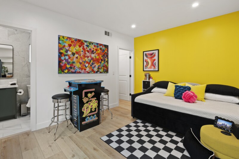 Property Id: 1942997 Tucked in the hills of Highland Park in Los Angeles, this modern 3-bedroom, 3-bath home blends luxury, comfort, and convenience. Perfect for traveling professionals, relocating families, or temporary insurance housing. Home Features: Three ensuite bedrooms with Roku TVs, walk-in closets, and blackout curtains. Primary suite has a California King bed; second bedroom has a queen; third bedroom has a full/twin trundle plus arcade! Outdoor & Extras: Private patio with seating, gas firepit, and BBQ grill. Kid-friendly gear available on request. Driveway parking for two cars and exterior security cameras for peace of mind (to protect your privacy, there are no cameras inside the home). Rental Details: - Non-smoking property inside and outside. - Quiet hours after 10pm. No parties or events. - All adult guests must complete background verification. - Renters insurance required for the duration of the stay. - Please inquire if you are bringing a pet during your stay.
