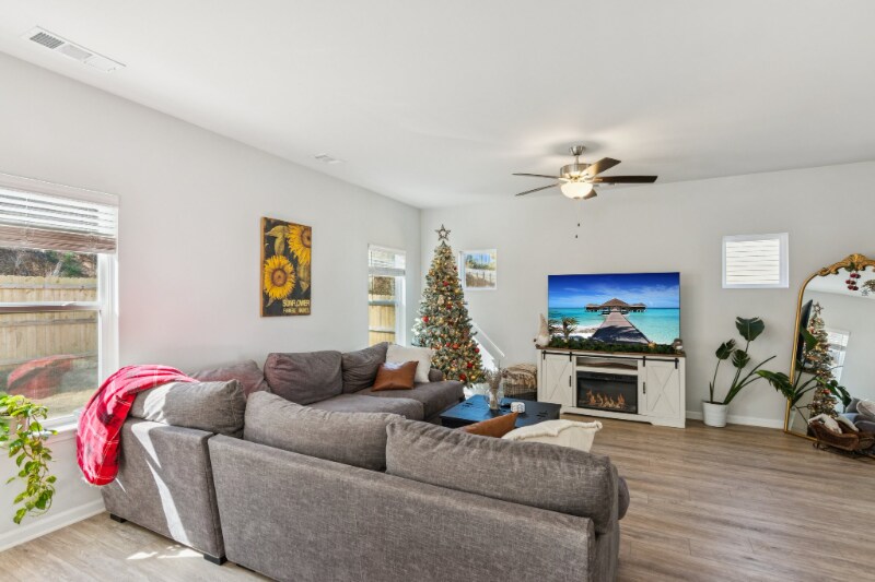 Property Id: 2264235 Spacious 3-bed, 2.5 bath home offers an open-concept main level with high ceilings, abundant natural light, and a stunning kitchen featuring an oversized island, stainless steel appliances, granite counters, and plenty of storage. A large pantry, dining area, and convenient half bath complete the first floor. Upstairs, enjoy an oversized primary suite with a tray ceiling and a spa-like bath that includes dual vanities, a soaking tub, and a separate shower. Two additional bedrooms, a full bath, a generous bonus/flex room, and an upstairs laundry room with washer and dryer included provide excellent functionality and comfort. Outside, the newly fenced backyard offers privacy and a perfect place to relax, entertain, or give pets room to play—because pets are welcome! Additional highlights include modern finishes throughout and a two-car garage. The home is conveniently located minutes from I-85, US-441, shopping, restaurants, and Tanger Outlets. As a special bonus, a free 55" Smart TV is included for any approved applicant who moves in on or before February 28, 2026.