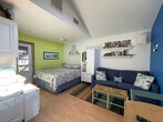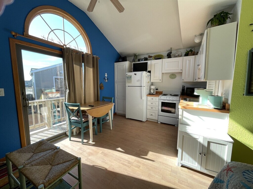 Feel at home in this 1-bedroom efficiency cabana in Hatteras, perfect for unwinding. This property sleeps 4. This brightly decorated cabana features a full stove, refrigerator, cable TV, wireless internet, central heat and air, and a shower/tub. Enjoy family meals in the kitchen while setting the table for 4. Retreat to the quiet top deck for some adult beverages and some stargazing. Dogs are welcome (1 dog only). Located on Hwy 12, this cabana is the perfect spot for taking it easy. Smoking is not allowed. Maximum occupancy is 4 people. Linens are not provided; guests can bring their own sheets, pillowcases, bath towels, and bath clothes, or rent them from Money's Worth or Ocean Atlantic Rentals. [SI]
