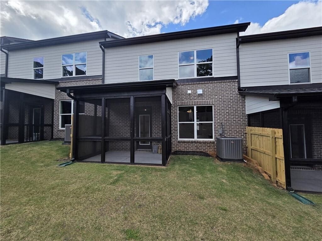 RAND NEW TOWNHOUSE - 4 BEDROOM AND 2.5 BATHROOM - Sweetwater floor plan with a covered screened-in back porch, a 4 bedroom design in the gated community of Parkstone Row in Tucker, GA. Parkstone Row is also located in the highly regarded Parkview High School District, making it a top choice for renters seeking quality schools and convenience. The homes in Parkstone Row feature a premium list of modern finishes that outshine the competition. Brick exteriors with cedar accents, 3/4 view front doors. Inside, you'll find designer kitchens with quartz countertops, shaker-style cabinetry, stainless steel appliances, subway tile backsplash, and pendant lighting over the island. High-end details continue throughout with 1x6 baseboard trim, 1x4 door casings, 1x4 window surrounds, 5-panel interior doors, flat-panel wainscoting in the foyer and dining area, black hardware and fixtures, oak site-finished stained hardwood stairs, and fully tiled master showers on the floor and walls with frameless glass doors. LVP flooring extends through the main level and continues upstairs in the common areas, providing both durability and style where it’s often overlooked. Both levels feature 9-foot ceilings, and the main level is enhanced by 6-foot-tall windows that fill the space with natural light. Each home also includes an electric vehicle charging outlet. HOA dues cover lawn maintenance, termite bond, and select exterior building maintenance, offering a low-maintenance lifestyle in a secure, gated setting.