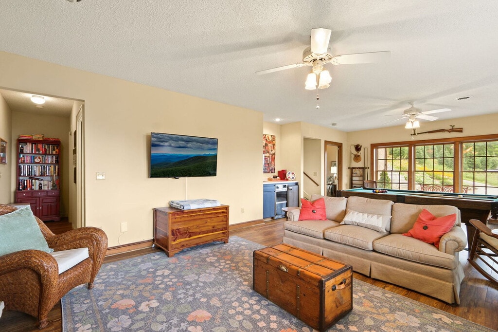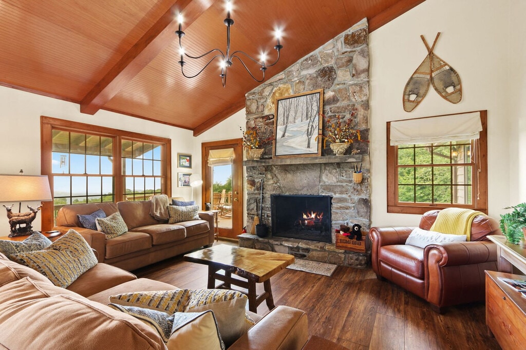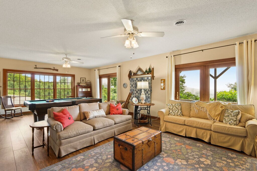 Welcome to "Cool Change," a private mountain cabin offering gorgeous views and a cozy living room with a wood-burning fireplace. This cabin features a fully equipped kitchen and dining area for six, four comfortable bedrooms with en-suite options, a downstairs living room with a pool table, and a spacious outdoor porch with rocking chairs and mountain views. The large sloped yard is perfect for sledding. Step into this inviting cabin just minutes from downtown Banner Elk and soak up the stunning views. Warm up by the floor-to-ceiling wood-burning fireplace after a day on the slopes or hiking nearby trails. The open-concept kitchen and dining area flow into the attractive living room, creating a perfect setting for memorable evenings. The living room is tastefully decorated with antiques, a comfy sofa, a coffee table, a cozy fireplace, and a TV for movie nights. The fully equipped kitchen is ready to support your culinary creativity, complete with a dining area that seats six. Early check-in and late check-out are subject to availability with a $25 per hour fee. A 4x4 or AWD vehicle is highly recommended during winter months. Located in the heart of the High Country, this cabin is a short distance from Sugar Mountain, Beech Mountain, Grandfather Mountain, and Banner Elk. The town of Banner Elk offers a beautiful mountain retreat with access to the conveniences of larger metropolitan areas. It features a lively arts and crafts scene, upscale boutiques, and outstanding restaurants. The Blue Ridge Parkway is just six miles away, and Boone, home to Appalachian State University, is a 30-minute drive. Smoking is not allowed. People other than those in the guest's party designated in the reservation may not stay overnight at the property. Quiet hours begin at 10 pm, as some neighbors live full-time nearby. Please be courteous.