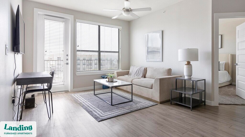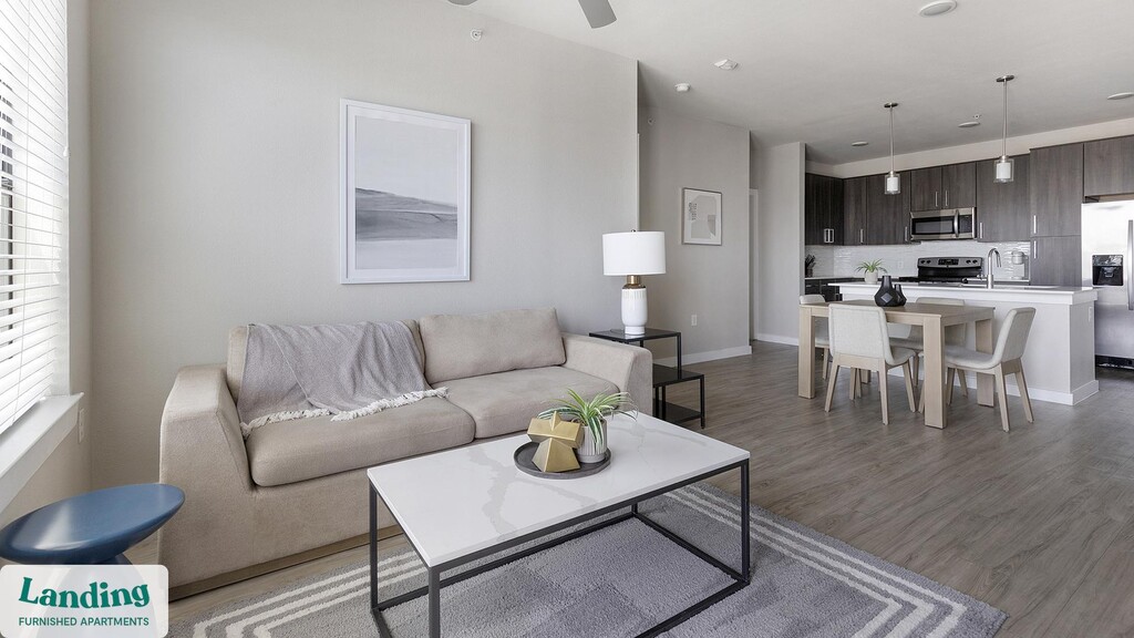 Landing offers flexible lease terms from weeks to months. Please always visit our website or contact us for the latest pricing & availability. Stay longer, save more: 6-Month Minimum base rent: starts at $2460/mo 12-Month Minimum base rent: starts at $2143/mo Landing offers flexible leases across a network of over 35,000 fully-furnished apartments throughout 375+ cities so you can rent on your terms, practically anywhere, and avoid the hassle of paying deposits or application fees. Visit to learn about all the benefits of a Landing membership, see our competitive up-to-date pricing, explore available apartments, take virtual tours, and make reservations online without jumping through traditional rental hoops. Landing's apartments at Tribute at the Rim are designed for comfortable, easy living, with the ability to stay as long as you like. Experience living with Landing Every apartment is outfitted with all the modern essentials including: custom-designed furnishings, a fully-equipped kitchen with deluxe stainless steel appliances, a gourmet coffee maker, premium linens, Smart TVs, and incredibly fast, reliable internet for working from home. When you live with Landing, you'll enjoy a hassle-free experience with the added benefit of 24/7 access to our dedicated member experience team. Some of the nitty-gritty: a background check and proof of income are required; we're completely smoke-free; bundled utility packages and pricing vary based on length of stay; pet-friendly options available; listed price reflects a 12-month minimum stay.