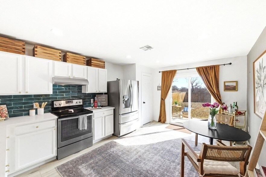 Welcome to this completely updated 4-bedroom, 2-bath home in the established Los Cielos neighborhood of Southeast Austin. This well-maintained property offers an economical entry point into an area seeing steady growth, with convenient access to Austin-Bergstrom International Airport, Circuit of the Americas, and a public transit connection just outside the neighborhood. Entering through the side-entry front door, you immediately feel the warmth of this thoughtfully updated home. The living area is light and airy, opening seamlessly to the kitchen with clear sightlines to the backyard. The kitchen remodel shines with classic subway tile, quartz countertops, and stainless steel appliances and yes, the refrigerator is negotiable and even makes whiskey-ball ice. Throughout the home you ll find hard flooring, fresh paint, and upgraded lighting. Both full bathrooms feel cozy yet stylish, featuring colorful subway tile and updated vanities. This property has been carefully maintained, with no foundation issues and gutters already installed important, confidence-building details. A solar panel system helps reduce monthly electric bills, adding long-term efficiency and savings. The flexible 4-bedroom layout works beautifully for remote work, guests, or a growing household. Outside, enjoy new landscaping, freshly trimmed trees, and a welcoming community feel. The home backs to approximately 10 acres of neighborhood land managed by the Los Cielos HOA, offering added privacy and a peaceful greenbelt setting with no immediate rear neighbors. This is a smart opportunity for buyers seeking value, updates, energy efficiency, and future upside in one of Austin s most active growth corridors.