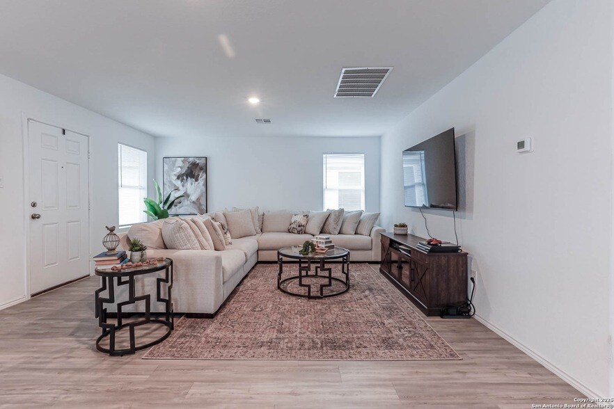 Ready for immediate move in. This single-story home has a smart layout that includes an owner's suite with a full bathroom and walk-in closet, plus two additional bedrooms share a bathroom in the hall. The living area is at the front of the home includes a comfortable family room, dining area and open kitchen with a convenient