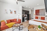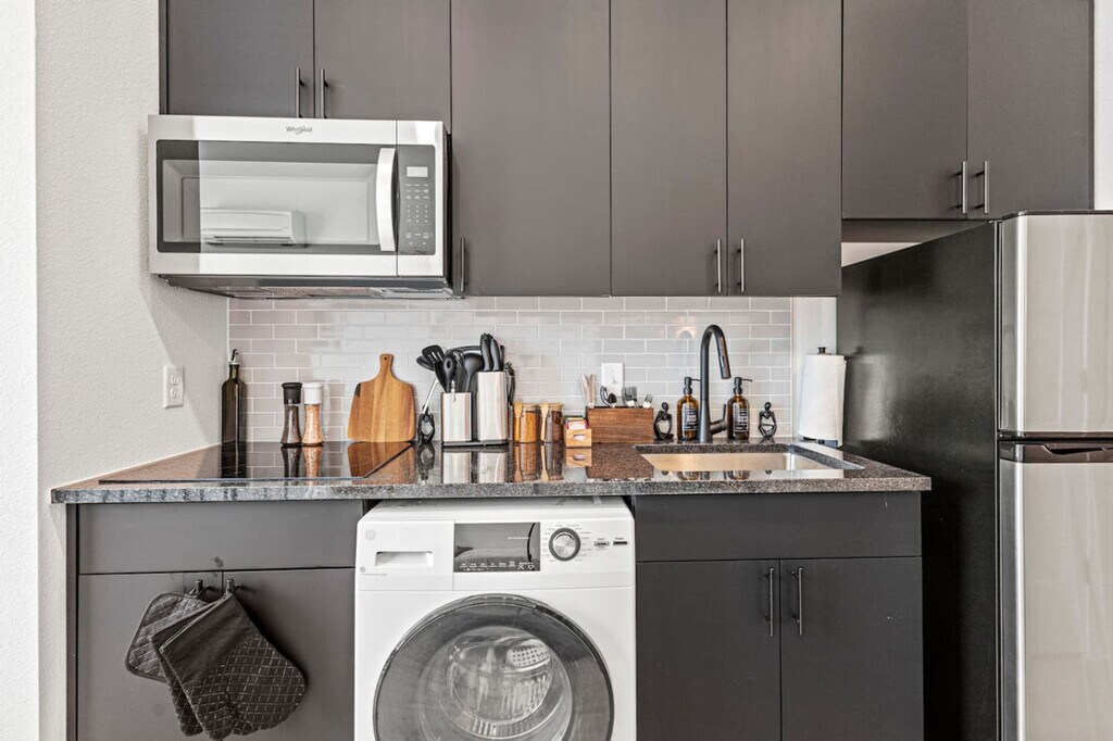 Feel at home in this modern suite in the Bishop Arts District, designed for comfort and convenience. This apartment offers a queen bed, sofa sleeper, stocked kitchen, and in-unit washer/dryer. This suite features a 40-inch smart TV with streaming services, high-speed Wi-Fi, and central A/C and heating. The fully equipped kitchen includes new appliances, a coffee machine, kettle, tea bags, spice rack, toaster, oil, salt, sugar, cookware, utensils, plates, glasses, and basic cooking supplies. The bathroom has a full-sized shower with shampoo, conditioner, body wash, fresh towels, washcloths, hand towels, and a hairdryer. Complimentary garage parking is available for one vehicle, and visitor parking is also available for extra vehicles. Building highlights include a gym, yoga and wellness studio, coworking space, podcast space, gaming lounge, rooftop lounge, barbecue area, and outdoor game area. Located within walking distance of the Bishop Arts District, this apartment is near boutiques, restaurants, bars, and galleries. Downtown Dallas is approximately 7 minutes away, and the Kay Bailey Hutchison Convention Center is about 8 minutes away. The American Airlines Center is around 10 minutes away, and the Perot Museum of Nature & Science and Klyde Warren Park are also about 10 minutes away. The Dallas Zoo is approximately 15 minutes away, and Dallas Love Field Airport is about 12 minutes away. Travel times are approximate and can vary based on traffic conditions. Evidence of pets inside the property will result in a $150 fine charged to guests. There is a $500 surcharge charged to groups that are deceitful about the use of the house. Guests partying will be asked to vacate the property immediately without refund. There is a strict no-smoking or vaping policy indoors, and a $500 fine will be applied for any violation. A surcharge of $100 per undeclared guest per night will be applied for unapproved guests. There is a $100 charge if either the fob or parking pass is not returned to the lockbox. [SI]
