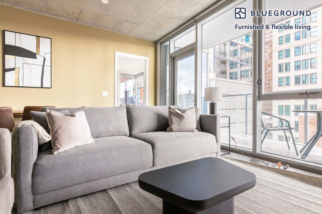 Discover the best of Chicago, with this two bedroom apartment in The Loop. It’ll be easy to simply show up and start living in this furnished apartment with its fully equipped kitchen, living room, and our dedicated, on-the-ground support. (ID #CHI1372) The advertised rate of $3,050/month is the lowest available price, based on a 1 month(s) and 17 day(s) stay with a move-in date of January 2, 2026. If you’re looking for a 1-year stay, the rate is $4,470/month. Rates vary depending on the duration of stay, season, and other parameters. For exact pricing and additional pricing components, please visit our website and enter your desired move-in and move-out dates. The rate is applicable when billed upfront; it can be higher if billed in multiple payments. Brokers are welcome to reach out. Were you looking for an unfurnished lease? Try Blueground instead and upgrade from unfurnished to furnished living: - Furnished at rates comparable to unfurnished - No setup or furniture costs - save thousands - Move-in ready - save time, just bring your suitcase Designed with you in mind As with any Blueground apartment, you’ll find a thoughtfully designed space complete with beautiful furniture and a fully equipped kitchen in this two bedroom property. And, thanks to our superior quality mattresses, luxury linens, and towels, you can relax knowing you’ll always feel comfortably at home. When you’re ready for some fun, you can take in the Chicago vibes or bring the entertainment to you with the premium wireless speaker or smart TV. This apartment also offers in-apartment laundry. Sleeping arrangements King Bed, 70.8in/180cm Queen Bed, 63in/160cm Amenities Building amenities unique to this two bedroom apartment include an on-site: - Dryer - Elevator - Swimming pool - Washing machine - Pets allowed Arrival and ongoing support The entire apartment is yours to enjoy! Throughout your stay, you’ll have access to our Client Experience team through the Blueground App. You can schedule additional cleanings, submit maintenance requests, and view our neighborhood recommendations with just a few taps. We’ll share all details upon confirmation of your stay. Ideally Located This furnished rental is situated in the most dynamic and convenient place to live in Chicago, The Loop. With its endless shopping, fine dining, stunning park, river and lake views, and entertainment opportunities, everything is possible at a moment’s notice. The area is a cultural getaway for professionals and students, who can combine work with pleasure. Discover landmark buildings like the Willis Tower and The Art Institute of Chicago. Millenium Park, near Lake Michigan, is always worth a visit. The Loop is within reach of accessible transportation, offering non-stop public transit, buses, and taxis. Union Station is approximately a 10 minute train ride. Other things to note Building amenities may have an extra cost. This Blueground apartment has flexible lease options, allowing you to book it for one month, a year, or more. Pets are welcome, though weight limits and breed restrictions apply and may incur fees. We take great pride in ensuring every photo displayed is shot in our own units with our actual furnishings. That said, we regularly refresh our decor and furniture arrangement, which may differ from what’s pictured. [SI]