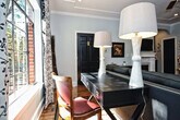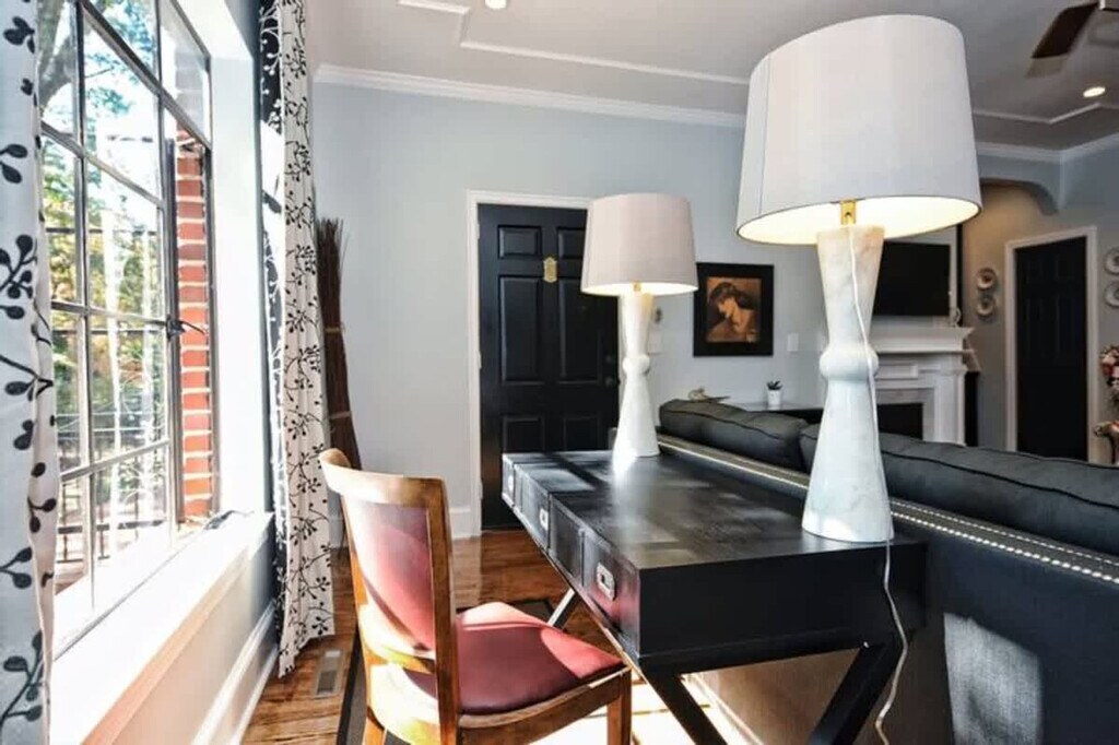 Feel at home in this luxurious and contemporary apartment in the heart of Myers Park, overlooking a lush, tree-lined median. This five-star luxury accommodation is perfect for an executive, corporate attorney, or anyone accustomed to a high level of accommodation, whether for short-term or long-term. This individually decorated apartment features Fisher & Paykel appliances and an elegant workspace. With spacious living areas, a screened porch (lower units), a private balcony (upper units), and a well-appointed gourmet kitchen, you will love coming home to this exceptional space. The master bedroom has a king-size bed, 400 thread-count sheets, a down duvet (synthetic-down duvet available), two closets including a walk-in, and an en suite bathroom tiled with Carrara marble, dual showers, a separate water closet, heated floors, and an abundant supply of Egyptian cotton towels. The second bedroom has two twin beds, which can be joined together to create a comfortable king-size bed, and the en suite bathroom is tiled in marble. The second bedroom configurations may be one king-size bed in lieu of two twin beds depending on the unit assigned, however the bed can be converted to two twins. The kitchen is outfitted with Fisher & Paykel appliances, including a gas range, cabinet-depth refrigeration, and dual dish drawers. A marble-tiled floor lends a luxurious feel, and custom cabinetry with granite counters and an undermount sink complete the space. The kitchen is fully equipped with measuring cups and spoons, roasting pans, mixing bowls, and a garlic press. A fully stocked wet bar with an ice maker off of the large living room offers a spot for socializing. The living room sofa converts to a very comfortable bed, and there's an elegant desk with a view of the front lawn and landscaped median. The dining room, which accommodates eight, leads to a screened porch, perfect for al fresco dining and relaxing. Furnishings include a mix of new, midcentury modern, and antique furniture with original artwork by local artists Nico Amortigue and Arthur Brouthers. All utilities, including broadband highspeed Wi-Fi, are included. If you are traveling with a dog, it must be registered at a cost of $59 per dog (two maximum). If you do not register your dog, you will be charged $120 per dog. A 7-day pass to the Dowd Y is $50. Ideally situated a mile from the Uptown business district, in a park-like setting, on an exclusive residential street, Hermitage Court, this apartment is surrounded by impressive stone gateways that flank each end of the street, providing a grand entrance to the neighborhood, developed between 1913 and 1925. Less than 2 miles from Uptown Charlotte (Panthers Stadium, Hornets/Time Warner Arena, Discovery Place, Convention Center, Bechtler Museum of Modern Art, Mint Museum, Spirit Square, Gantt Center for African-American Art, Epicentre, NASCAR Hall of Fame, NC Music Factory and more) this Hermitage Court building is located in the heart of historic Myers Park, home to generations of prominent Charlotteans, on a quiet lane with a beautifully landscaped median. Within a half mile walking distance are more than 40 restaurants (Thai, Italian (fine and casual), French....), many locally owned shops along the Myers Park Mile (antiques, fine gifts, men's and women's clothing, etc.) and several parks, including an almost-private tennis court in Edgehill Park. Live theater is staged just around the corner at Theatre Charlotte and independent movies are screened at the Manor Theater less than a half mile away. Top-notch medical facilities, including CMC (Levine Children's Hospital, Levine Cancer Institute) and Presbyterian hospitals are 2-3 miles away, and OrthoCarolina just a mile. SouthPark Mall (Luis Vuitton, Hermes, Neiman Marcus, etc.) is less than 5 miles away. The streetcar to Uptown is a 10 minute walk away. Uber/Lyft are also convenient options, and many bikeshare companies offer inexpensive bikes and scooters. Charlotte’s biggest and best fitness center, the Dowd Y, is only five minutes away. Amenities include cardio equipment, weights, group classes, and swimming. Guests must be at least 21 years old to make a reservation, and this rule is strictly enforced. Dogs are never allowed on the furniture or bed. If there is hair on the furniture, excess hair in the home, stains, damage, or waste found in the yard or home, you will be charged an additional fee. To maintain a peaceful environment for our neighbors and future guests, we do not permit parties, additional guests, events, or large gatherings in the property. Smoking and vaping are not allowed inside/outside the home or building. Please respect the quiet hours between 10pm and 7am to ensure a peaceful atmosphere for everyone. No additional overnight guests beyond the number specified in your booking without prior approval. Be mindful of noise levels, especially during nighttime hours. Please do not rearrange the furniture in the house. Air conditioning must remain between 72 and 75 degrees in the summer and 68-72 in the winter and on AUTO (not on) to help ensure it stays in good working condition during your stay. Keep doors and windows closed as much as possible. A workstation is available to rent out for your stay. This will include a monitor, keyboard, and mouse. [SI]