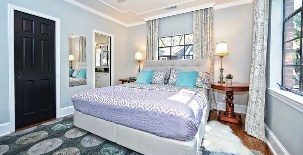 Come and feel at home in this beautiful 2-bedroom, 2.5-bathroom residence in Myers Park, just steps from the heart of Uptown Charlotte. This second-floor luxury residence is ideally suited for executives, attorneys, relocating families, or anyone seeking top-notch accommodation for short-term or long-term stays. This gorgeous condo boasts a fully equipped kitchen, indoor fireplace, spacious screened porch, assigned parking, and a beautifully landscaped front lot for outdoor entertaining. The living room features a large, upholstered sofa that pulls out into an additional bed, a flatscreen television equipped with streaming and Hulu + Live TV channels, and artwork by local artist Nico Amortegui. The kitchen features a gas range, full-sized refrigerator, and dishwasher with double dish drawers, granite countertops, and essentials such as measuring cups, spoons, roasting pans, mixing bowls, and a garlic press. Adjacent to the spacious living room is a well-appointed wet bar with an ice maker. The dining room comfortably seats up to eight guests and opens up to a screened porch. The main bedroom has a king-size bed with a television and two spacious closets, one of which is a walk-in. The bathroom features Carrara marble tiles, dual showers, a separate water closet, and a heated tiled floor. The second bedroom has a king bed and a flatscreen television. Included in the amenity package are a starter supply of Nest bath products as well as detergents. The building has a shared patio that includes a grill, outdoor tables, a plush sofa, and chairs. Charlotte’s biggest and best fitness center, the Dowd Y, is only five minutes away, and a 7-day pass is $50. If you are traveling with a dog, it must be registered at a cost of $59 per dog (two maximum). If you do not register your dog, you will be charged $120 per dog. A workstation is available for $10 per day, which includes a 32” monitor, a wireless keyboard, and mouse. Single beds can be joined into a king-size bed for a one-time $50 fee. A pack n’ play and/or highchair can be requested for use with at least a 24-hour advance notice. Situated just a mile away from the bustling Uptown business district, this property enjoys an idyllic location on Hermitage Court. Within a half mile walking distance, you can find over 40 locally owned restaurants, as well as Starbucks, Panera, and Old Pancake House. On the ‘Myers Park Mile’, you will find many locally owned shops featuring antiques, exquisite gifts, fine wines, and bespoke clothing for men and women. From spring to fall, Simpson’s Farmers Market on Kings is conveniently nearby and open on Tuesday, Friday, and Saturday. Charlotte’s renown greenway is less than a half mile away. Uptown Charlotte is only one mile away and a short walk or ride to the Carolina Panthers and Charlotte FC Stadium, Hornets/Spectrum Arena, Knights Baseball Stadium, Discovery Place, Convention Center, Bechtler Museum of Modern Art, Mint Museum, Spirit Square, Gantt Center for African American Arts + Culture, Discovery Place Science, and NASCAR Hall of Fame. Dogs are never allowed on the furniture or bed. If there is hair on the furniture, excess hair in the home, stains, damage, or waste found in the yard or home, you will be charged an additional fee. Smoking any substance is strictly prohibited on the premises and may result in a $300 penalty. Please observe quiet hours from 10:00 pm to 7:00 am. The property has a zero tolerance for parties, unruly behavior, loud music, disrespectful or unlawful activities, and violations will warrant forfeit of their entire reservation and may incur additional fees. A stylish desk overlooks the picturesque front lawn, and high-speed Wi-Fi allows business travelers to remain connected throughout their stay. [SI]