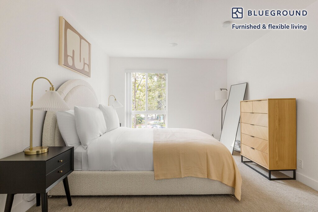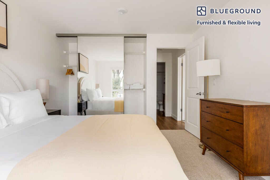Show up and start living from day one in Santa Clara with this pretty two bedroom Blueground apartment. You’ll love coming home to this thoughtfully furnished, beautifully designed, and fully equipped Rivermark of Santa Clara home. (ID #SFO1977) The advertised rate of $3,900/month is the lowest available price, based on a 12 month(s) stay with a move-in date of July 1, 2026. Rates vary depending on the duration of stay, season, and other parameters. For exact pricing and additional pricing components, please visit our website and enter your desired move-in and move-out dates. The rate is applicable when billed upfront; it can be higher if billed in multiple payments. Brokers are welcome to reach out. Were you looking for an unfurnished lease? Try Blueground instead and upgrade from unfurnished to furnished living: - Furnished at rates comparable to unfurnished - No setup or furniture costs - save thousands - Move-in ready - save time, just bring your suitcase Designed with you in mind Thoughtfully designed with bespoke finishes, modern furnishings, and a fully equipped kitchen, you’ll enjoy that “I’m home” feeling with this Blueground apartment. Whether you’re lounging in your sophisticated living room streaming the latest and greatest entertainment on the smart TV or premium wireless speaker, or getting some well-earned rest on the superior quality mattress with luxury linens, you’ll fall in love with everything this Rivermark of Santa Clara apartment has to offer. This apartment also offers in-apartment laundry. Sleeping arrangements King Bed, 70.8in/180cm Queen Bed, 63in/160cm Amenities Building amenities unique to this two bedroom apartment include an on-site: - Basketball Court - BBQ Area - Dryer - Swimming pool - Washing machine - Parking - Pets allowed - Playground Arrival and ongoing support The entire apartment is yours to enjoy! Throughout your stay, you’ll have access to our Client Experience team through the Blueground App. You can schedule additional cleanings, submit maintenance requests, and view our neighborhood recommendations with just a few taps. We’ll share all details upon confirmation of your stay. Other things to note Building amenities may have an extra cost. This Blueground apartment has flexible lease options, allowing you to book it for one month, a year, or more. Pets are welcome, though weight limits and breed restrictions apply and may incur fees. Parking is offered based on availability and is subject to a fee. Please keep in mind that this is a walk up building. We take great pride in ensuring every photo displayed is shot in our own units with our actual furnishings. That said, we regularly refresh our decor and furniture arrangement, which may differ from what’s pictured. [SI]