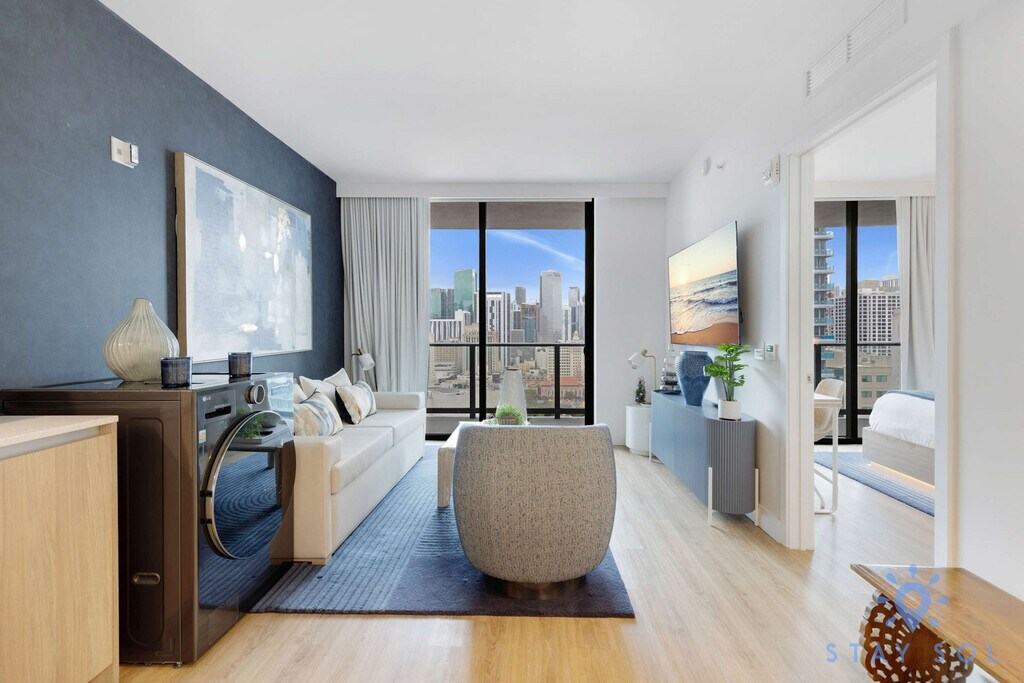 Welcome to your chic downtown retreat! This stylish 1-bedroom apartment features two luxurious full beds and a convenient sofa bed with a full-sized mattress. Enjoy modern amenities including an amazing pool and a well-equipped gym. Relax on your private balcony with stunning city views and stay connected with complimentary Wi-Fi. This apartment offers the ultimate blend of comfort and convenience in the heart of the city. This modern 1-bedroom apartment is designed for both comfort and convenience. The living room includes a sofa bed, perfect for extra guests. Enjoy the convenience of a full bathroom with all the essentials. Step outside to your private balcony for stunning city views. With its chic design and prime location, this apartment offers everything you need for a memorable stay. We are a pet-friendly property with a 30 lbs restriction that doesn’t apply to ESA. There is a pet fee of $100 per dog with a maximum of 2 pets allowed. Free Pack n Play available under request. Downtown Miami is a vibrant urban area known for its dynamic cultural scene, modern architecture, and bustling nightlife. It’s a hub of business and entertainment, featuring attractions like the Miami Art Museum, Bayfront Park, and the American Airlines Arena. The neighborhood is characterized by its sleek skyscrapers, upscale dining, and diverse events, making it a central spot for both locals and tourists. Getting around Downtown Miami is convenient with several options. You can use the Miami Metromover, a free, automated people mover that connects key areas. For public transit, Metrobus and Metrorail services are available. Taxis, rideshares like Uber and Lyft, and bike rentals are also popular. Walking is feasible in many parts due to the area's compact layout and pedestrian-friendly streets. Parking is not included in the listing. There may be an increase in daytime noise levels due to nearby construction.