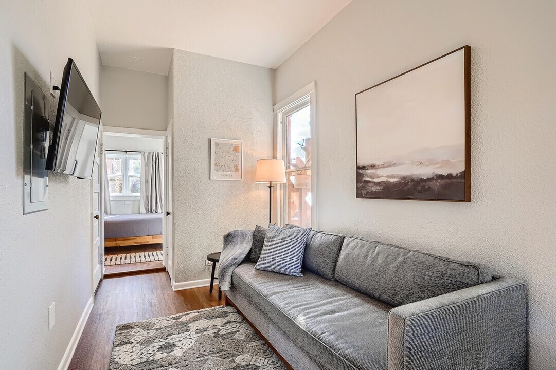 The advertised rate of $3,488/month is the lowest available price, based on a 1 month(s) stay with a move-in date of June 18, 2026. Rates vary depending on the duration of stay, season, and other parameters. For exact pricing and additional pricing components, please visit our website and enter your desired move-in and move-out dates. The rate is applicable when billed upfront; it can be higher if billed in multiple payments. Feel at home in this apartment, one of four in a beautiful converted mansion 4-plex common in Denver’s older neighborhoods. Located on the first floor on the back half of the building, this apartment has west-facing living room and bedroom windows that open to the backyard. This apartment has a great mix of old-school charm with luxury vinyl plank floors, a red brick building, and broad windows, plus a modern style with a renovated kitchen and bath and hip furniture. Shared, free laundry is in the basement, accessed from the building’s southside door just inside the fence. Central heat is controlled by the host from a single thermostat for the building, while guests control window AC units and ceiling and tower fans. Pet rent is $90 per dog per month. Enjoy direct access to the shared backyard from your bedroom, perfect for enjoying a book, coffee, or glass of wine. You're a 25-minute bike or walk to Cherry Creek Trail, and walking distance to incredible restaurant areas: 5 blocks north to Pennsylvania & Bayaud, 3 blocks north to Alameda, 11 blocks north to 6th Ave & Cap Hill, and 8 blocks west to Broadway. Wash Park is 3 minutes away, Trader Joe's is 6 minutes away, downtown Denver, RiNo, and LoHi are 10 minutes away, and Red Rocks is 20 minutes away. Ski resorts are 1 hour and 30 minutes away. Nearby hospitals include St Joseph, Presbyterian St Luke’s, and Rose (7 minutes), and Denver Health (8 minutes). UC Health University of CO and Children’s Hospital CO are 22 minutes away. Failure to check out on time at 10 AM will incur a $50 fee for every additional 30 minutes. This is a dog-friendly property, but cats are not allowed. Many guests work from home, so please be mindful of noise from pets, music, and children. A warning will be given for any reported noise disturbances, and additional disturbances will result in eviction without refund. All properties are non-smoking/non-vaping, and violation of this policy will result in damage fees. All trash must be taken out and placed in trash bins, and all dishes must be placed in the dishwasher upon check out. You are responsible for removing all personal property at the time of check out; fees for returning items left behind will be incurred, with a minimum $50 returned item fee. [SI]