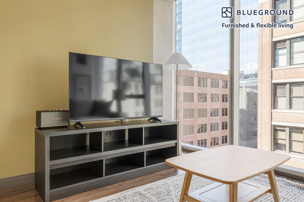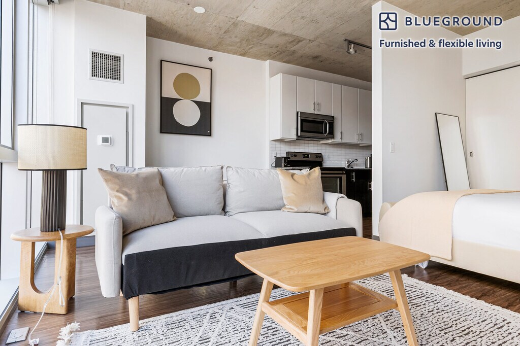 Discover the best of Chicago, with this studio apartment in West Loop Gate. It’ll be easy to simply show up and start living in this furnished apartment with its fully equipped kitchen, living room, and our dedicated, on-the-ground support. (ID #CHI1307) The advertised rate of $1,800/month is the lowest available price, based on a 1 month(s) and 17 day(s) stay with a move-in date of January 6, 2026. If you’re looking for a 1-year stay, the rate is $2,300/month. Rates vary depending on the duration of stay, season, and other parameters. For exact pricing and additional pricing components, please visit our website and enter your desired move-in and move-out dates. The rate is applicable when billed upfront; it can be higher if billed in multiple payments. Brokers are welcome to reach out. Were you looking for an unfurnished lease? Try Blueground instead and upgrade from unfurnished to furnished living: - Furnished at rates comparable to unfurnished - No setup or furniture costs - save thousands - Move-in ready - save time, just bring your suitcase Designed with you in mind Thoughtfully designed with bespoke finishes, modern furnishings, and a fully equipped kitchen, you’ll enjoy that “I’m home” feeling with this Blueground apartment. Whether you’re lounging in your stylish living room streaming the latest and greatest entertainment on the smart TV or premium wireless speaker, or getting some well-earned rest on the superior quality mattress with luxury linens, you’ll fall in love with everything this West Loop Gate apartment has to offer. This apartment also offers in-apartment laundry. Sleeping arrangements Queen Bed, 63in/160cm Amenities Building amenities unique to this studio apartment include an on-site: - BBQ Area - Doorman - Dryer - Elevator - Swimming pool - Washing machine - Pets allowed Arrival and ongoing support The entire apartment is yours to enjoy! Throughout your stay, you’ll have access to our Client Experience team through the Blueground App. You can schedule additional cleanings, submit maintenance requests, and view our neighborhood recommendations with just a few taps. We’ll share all details upon confirmation of your stay. Other things to note Building amenities may have an extra cost. This Blueground apartment has flexible lease options, allowing you to book it for one month, a year, or more. Pets are welcome, though weight limits and breed restrictions apply and may incur fees. We take great pride in ensuring every photo displayed is shot in our own units with our actual furnishings. That said, we regularly refresh our decor and furniture arrangement, which may differ from what’s pictured. [SI]
