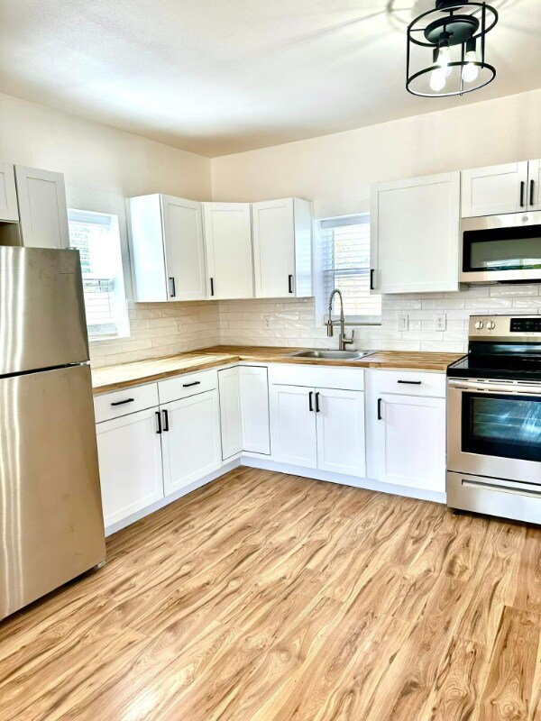 ID de propiedad: 1304637 Esta casa de 1927 en el centro histórico de Alamogordo ha sido bellamente remodelada y actualizada con todas las comodidades modernas que usted podría desear. Cuenta con tres dormitorios, dos baños, una sala de estar/cocina de diseño abierto y una espaciosa lavandería. Nuevos electrodomésticos de acero inoxidable, lavadora y secadora, nuevos pisos, nueva pintura por dentro y por fuera, y un patio trasero privado completamente cerrado. Aire acondicionado y calefactor, porche trasero de nueva construcción, nuevo calefactor de agua caliente y mucho más. Opciones de alquiler de 6 a 12 meses. Se requiere el alquiler del primer mes y el depósito de garantía para la mudanza. Se permiten mascotas limitadas.