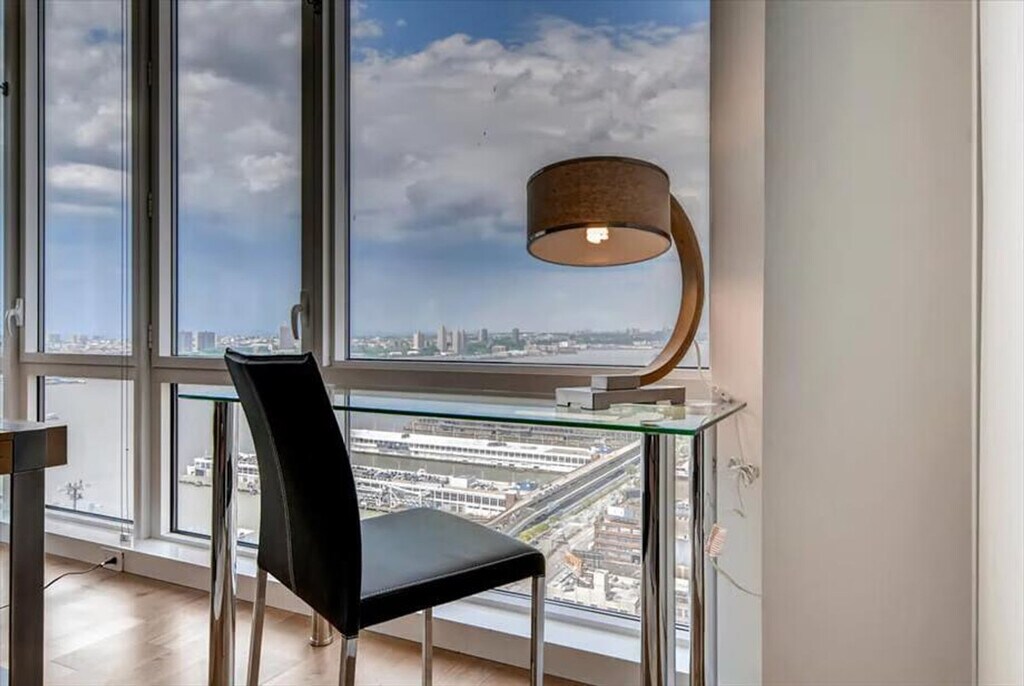Experience the best of Manhattan from this spectacular building. With sweeping views and hand-picked furnishings, this luxurious property offers elegant apartments with designer kitchens and hardwood floors. Located near the Theater District, the Javits Center, and public transit, you'll feel at home in this walkable neighborhood. Combining the premium amenities of a high-end resort with the space and privacy of a home, this beautiful tower offers sophisticated city living. Wake up to the day through massive floor-to-ceiling windows, with each bed outfitted with premium linens and spacious closets. The bathrooms feature Olympic Gray porcelain tile and modern fixtures, including glass-walled showers with city views. The Italian-crafted kitchen, equipped with European appliances and quartz countertops, invites you to dine in style. There is an additional fee for all amenities, including access to the Life Time Athletic Club, two outdoor pools, and valet parking. Cribs are available upon request and may incur additional fees. Pets are welcome with a fee of $250 or $500, depending on the pet policy, which may include restrictions on pet size and breed. This address is one of the best in Manhattan, putting you within walking distance of Times Square, the Theater District, the Javits Center, and a plethora of shops and restaurants. For further journeys around the NYC metro, Port Authority Station and the Midtown/W. 39th St. ferry terminal are just a few blocks away. All guests are required to wear a mask in all non-private areas at all times. The use of amenities is subject to fees and availability. Photos are representative of the actual apartment, and there may be differences in furniture and layouts of the assigned unit. A laptop computer is not included. The airy floor plan, illuminated by natural light, provides ample space for families, friends, colleagues, or solo travelers to relax and recharge. Whether you prefer to watch the game, catch up on emails, or admire the city views, you'll find the perfect spot to do so. [SI]
