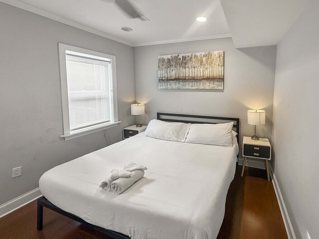 Feel at home in this thoughtfully arranged 2-bedroom retreat in Philadelphia's vibrant Queen Village neighborhood. This warm and unassuming home offers a calm contrast to the city’s energy. This charming retreat offers a perfect mix of comfort, simplicity, and convenience. The living area features a comfortable sofa and an air mattress for extra sleeping options. The fully equipped kitchen features stainless steel appliances and all the essentials needed to prepare meals. The modern bathroom includes a walk-in shower, plush towels, and complimentary toiletries. Pets are allowed depending on size, please inquire beforehand. The pet cleaning fee is $25 per night for stays of 1 to 4 nights, $200 for stays of 5 to 29 nights, and $300 for stays of 30 or more nights. Located in the heart of Queen Village, this apartment is just a short walk from lively South Street, the iconic Italian Market, the Liberty Bell, Independence Hall, and the bustling restaurants and shops that define the historic district. The neighborhood’s charming streets and local markets make it easy to enjoy Philadelphia like a local. Penn’s Landing and the waterfront are nearby, with easy access to public transit and the best of Philadelphia’s culture and history. All guests are subject to verification checks and are required to provide the necessary information within 24 hours of booking. Same-day bookings are required to provide the information within 1 hour of booking. We reserve the right to cancel any reservation that does not meet our verification check criteria. [SI]